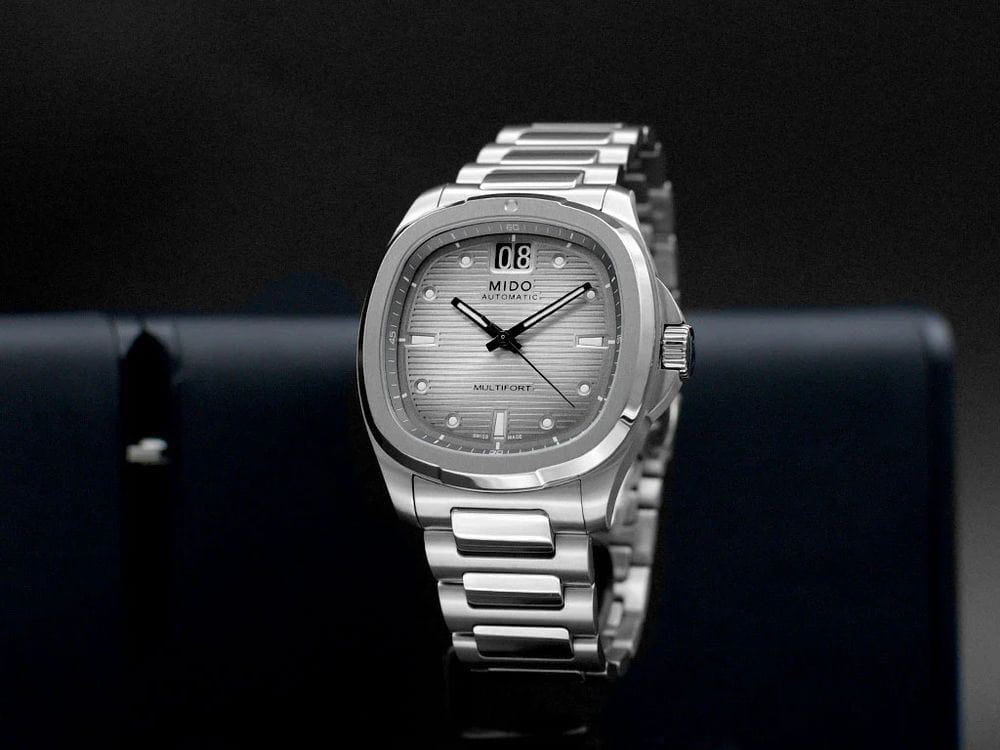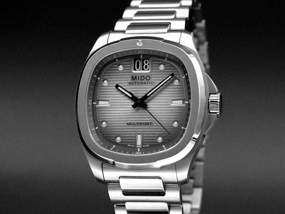 Мужские механические швейцарские часы Mido Multifort TV Big Date M049.526.44.081.00, механический механизм (автоматический калибр) с высокой точностью. Сапфировое стеклоСапфировое стеклоПрочный и надёжный материал из кристалла сапфира синтетического происхождения, характеризующийся особой твёрдостью и устойчивостью к царапинам и повреждениям. устойчивое к появлению царапин, обладающее высокой прозрачностью. Корпус часов изготовлен из нержавеющей стали в форме телевизора, столь же впечатляющий, сколь и точный, благодаря своему мощному механическому механизму. Современный и динамичный дизайн этих швейцарских часов подчеркивается ярким горизонтальным циферблатом с матовой отделкой, а также их отличительной функцией: большой датой в положении 12 часов. Стрелки с люминесцентным покрытиемЛюминесцентное покрытиеПозволяет считывать показания времени в темноте. Производители наносят на стрелки, часовые индексы, безель или поверхность циферблата светонакопительный состав, дающий холодное свечение.. Мощный автоматический механизм последнего поколения Calibre 80 оснащен высокотехнологичной балансировочной пружиной Nivachron ™ , которая обеспечивает исключительную устойчивость к ударам и магнитным полям. Класс водозащиты: 100 метров, позволит плавать, нырять и заниматься другими водными видами спорта. Стальной браслет на раскладной застёжкеРаскладная застёжкаТакой тип застёжки используется только на браслетах из металла. Она никогда не раскрывается полностью, происходит разделение на 2 и более частей. Раскладывающая застёжка снизит вероятность потери часов к минимуму..