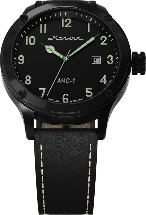 Мужские механические часы с автоподзаводом — это надёжный аксессуар от легендарного бренда «МОЛНИЯ», созданного на Челябинском часовом заводе. Корпус диаметром 44 мм выполнен из нержавеющей стали с IP-покрытиемIP-покрытиеМетод ионного напыления. Демонстрирует повышенную устойчивость к истиранию, окислению и химическим веществам. Под воздействием высокого давления и температуры около 1500°C молекулы металла надёжно соединяются с частицами корпуса часов.. Циферблат чёрного цвета оформлен стрелками и индексами со светонакопительным составом Super-LumiNova. Окошко даты расположено в положении 3 часов. Циферблат защищён сапфировым стекломСапфировое стеклоПрочный и надёжный материал из кристалла сапфира синтетического происхождения, характеризующийся особой твёрдостью и устойчивостью к царапинам и повреждениям.. Механизм — японский автоматический калибр Miyota 8215. Часы оснащены кожаным ремешком чёрного цвета с классической пряжкой. Водонепроницаемость 100 м позволяет использовать часы для плавания и повседневного ношения. Идеальный выбор для тех, кто ценит российское качество и мужественный дизайн.