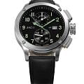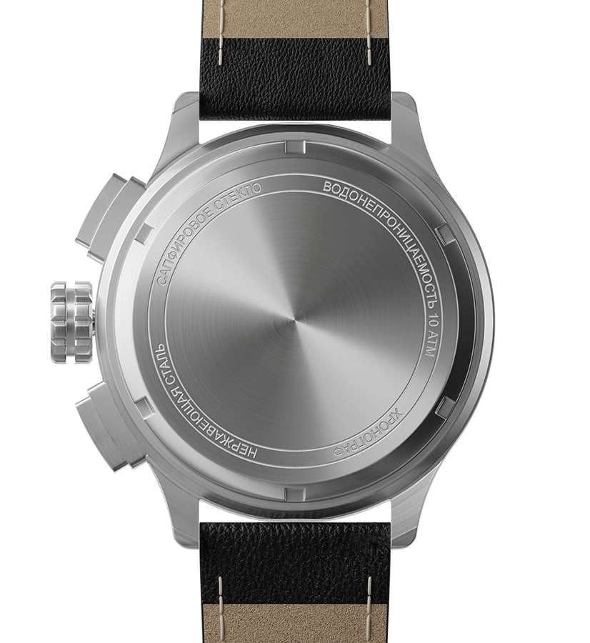 Мужские кварцевые часы — это стильный и функциональный аксессуар с хронографом. Корпус диаметром 44 мм выполнен из нержавеющей стали 316L с матовой полировкой, включая безельБезельВнешний ободок, закрепляющий стекло. В спортивных часах так называется поворотное кольцо с делениями на циферблате, выполняет роль таймера – замеряет отрезки времени на шкале. Неподвижный безель – элемент декора. Однонаправленно вращающийся безель на дайверских часах позволяет фиксировать моменты погружения и выныривания на поверхность., кнопки и заводную головку. Циферблат чёрного цвета оформлен индексами и стрелками. Стрелки и метки с люминесцентным покрытиемЛюминесцентное покрытиеПозволяет считывать показания времени в темноте. Производители наносят на стрелки, часовые индексы, безель или поверхность циферблата светонакопительный состав, дающий холодное свечение. Super-LumiNova, обеспечивающим хорошую читаемость в темноте. Циферблат защищён сапфировым стекломСапфировое стеклоПрочный и надёжный материал из кристалла сапфира синтетического происхождения, характеризующийся особой твёрдостью и устойчивостью к царапинам и повреждениям.. Механизм — швейцарский кварцевый калибр Ronda 3520.D с функциями хронографаХронографФункция позволяет измерять отрезки времени с особой точностью: часы, минуты, секунды. Верным признаком хронографа является наличие на циферблате 3 дополнительных окошек-счётчиков. и секундомераСекундомерСекундоме́р — прибор, способный измерять интервалы времени с точностью до долей секунды.. Часы оснащены кожаным ремешком чёрного цвета с классической пряжкой. Водонепроницаемость 100 м позволяет использовать часы для плавания и повседневного ношения. Идеальный выбор для тех, кто ценит точность, качество и выразительный дизайн.