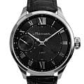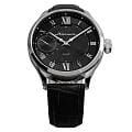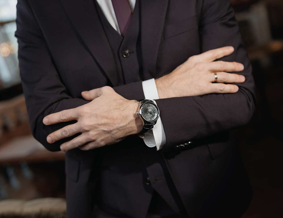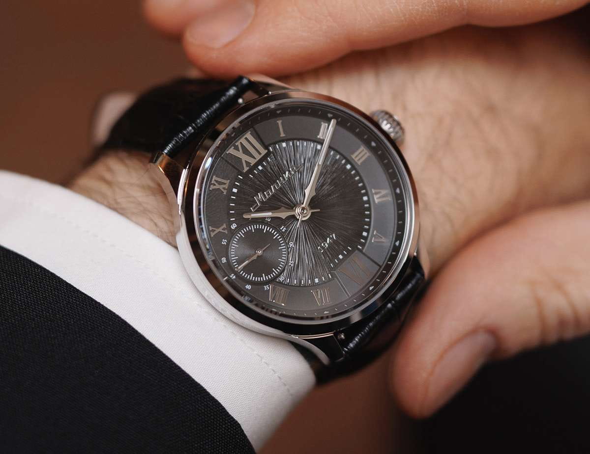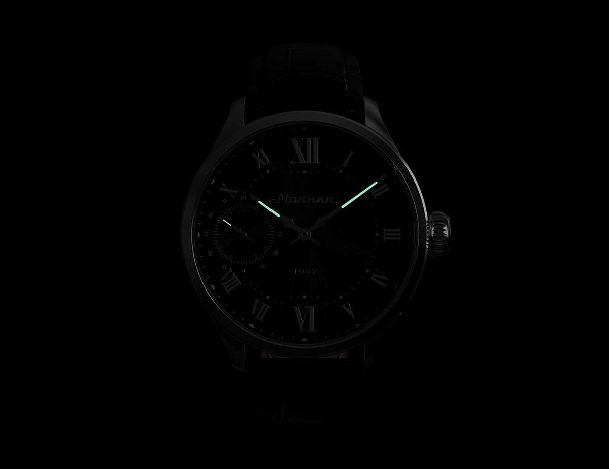 Мужские механические часы с ручным подзаводом — это аксессуар от легендарного бренда «МОЛНИЯ», созданный на Челябинском часовом заводе. Корпус диаметром 41 мм и толщиной 12 мм выполнен из нержавеющей стали 316L с зеркальной полировкой. БезельБезельВнешний ободок, закрепляющий стекло. В спортивных часах так называется поворотное кольцо с делениями на циферблате, выполняет роль таймера – замеряет отрезки времени на шкале. Неподвижный безель – элемент декора. Однонаправленно вращающийся безель на дайверских часах позволяет фиксировать моменты погружения и выныривания на поверхность. также выполнен из стали с зеркальной отделкой. Циферблат чёрного цвета оформлен римскими цифрами и стальными индексами. Малая секундная стрелка вынесена на позицию 9 часов. Циферблат защищён сапфировым стекломСапфировое стеклоПрочный и надёжный материал из кристалла сапфира синтетического происхождения, характеризующийся особой твёрдостью и устойчивостью к царапинам и повреждениям. толщиной 2,5 мм. Механизм — мануфактурный калибр 3603, собранный вручную, с запасом хода до 40 часов. Прозрачная задняя крышка позволяет наблюдать за работой механизма. Часы оснащены чёрным кожаным ремешком шириной 20 мм с раскладной застёжкойРаскладная застёжкаТакой тип застёжки используется только на браслетах из металла. Она никогда не раскрывается полностью, происходит разделение на 2 и более частей. Раскладывающая застёжка снизит вероятность потери часов к минимуму. и системой быстрой замены. Водонепроницаемость 100 м позволяет использовать часы для плавания и повседневного ношения. Идеальный выбор для тех, кто ценит российское качество и традиции.