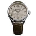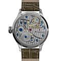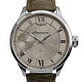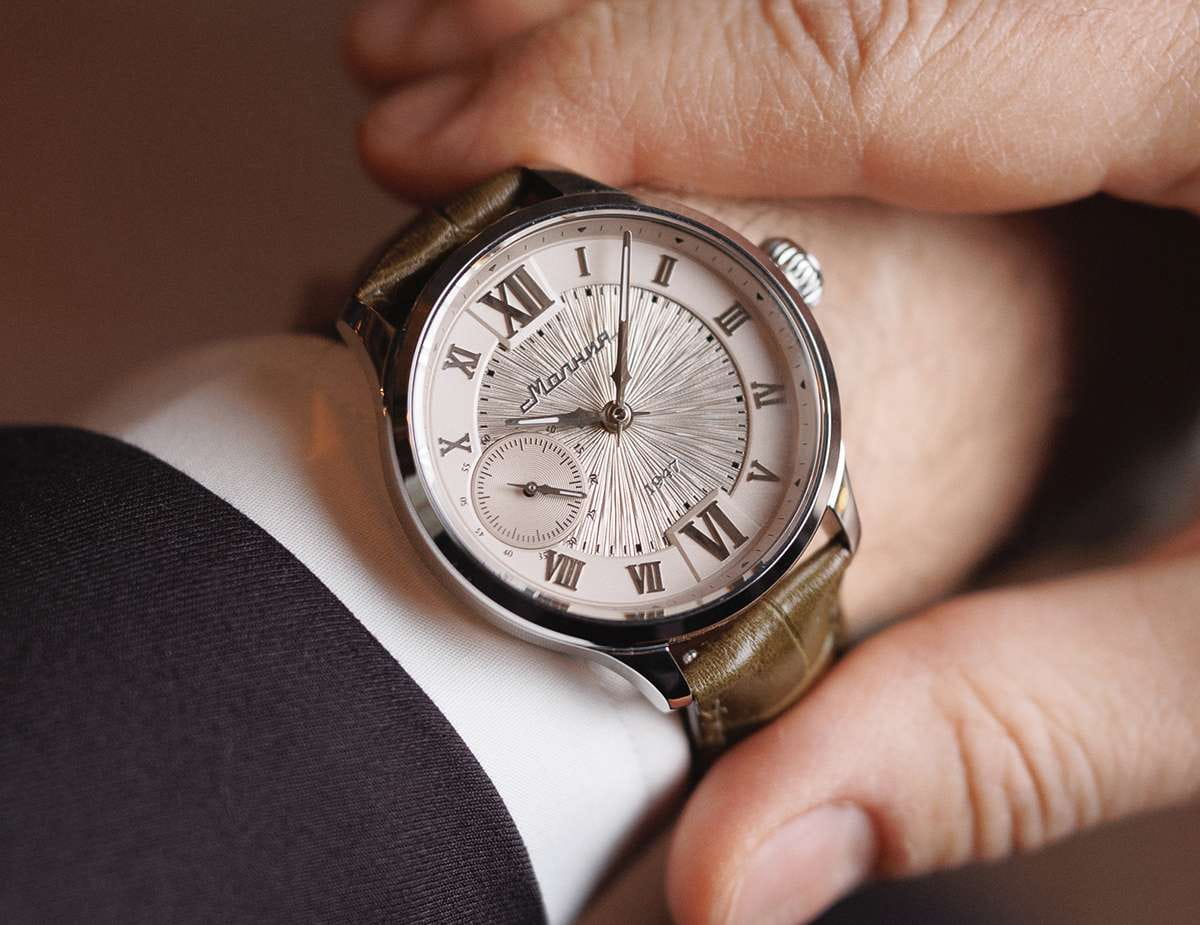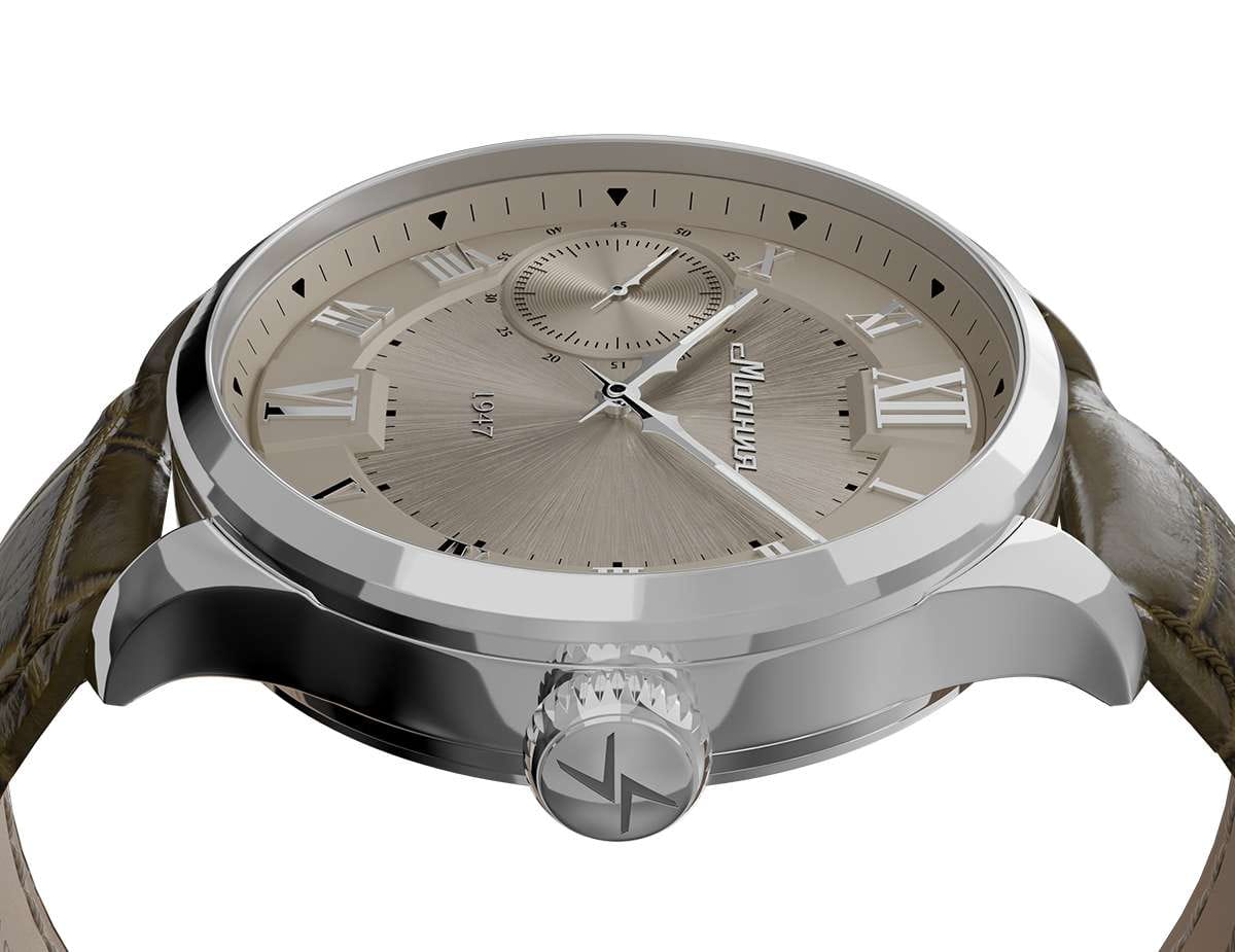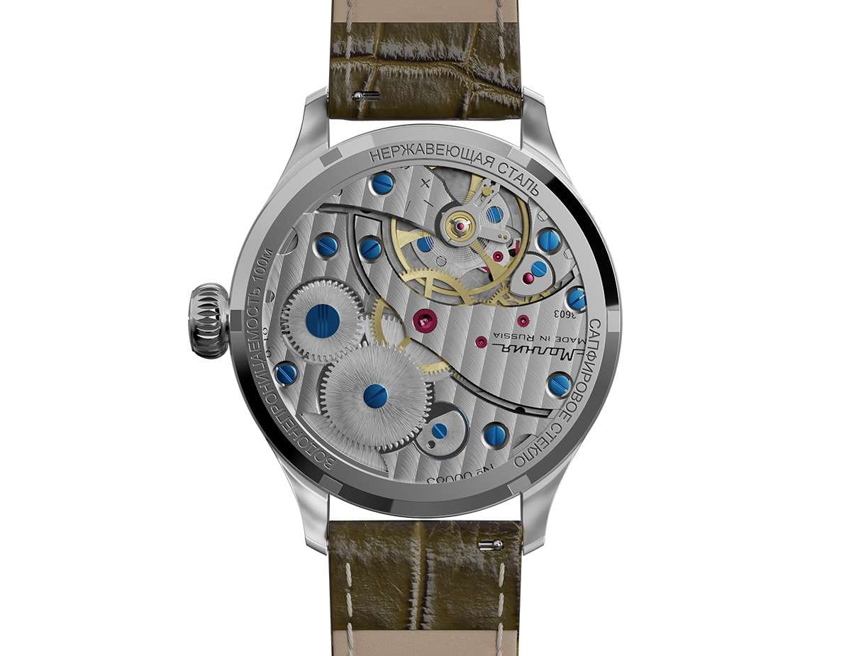 Мужские механические часы с ручным подзаводом — это аксессуар от легендарного бренда «МОЛНИЯ», созданный на Челябинском часовом заводе. Корпус диаметром 41 мм и толщиной 12 мм выполнен из нержавеющей стали 316L с зеркальной полировкой. БезельБезельВнешний ободок, закрепляющий стекло. В спортивных часах так называется поворотное кольцо с делениями на циферблате, выполняет роль таймера – замеряет отрезки времени на шкале. Неподвижный безель – элемент декора. Однонаправленно вращающийся безель на дайверских часах позволяет фиксировать моменты погружения и выныривания на поверхность. также выполнен из стали с зеркальной отделкой. Циферблат бежевый цвета оформлен римскими цифрами и стальными индексами. Малая секундная стрелка вынесена на позицию 9 часов. Циферблат защищён сапфировым стекломСапфировое стеклоПрочный и надёжный материал из кристалла сапфира синтетического происхождения, характеризующийся особой твёрдостью и устойчивостью к царапинам и повреждениям. толщиной 2,5 мм. Механизм — мануфактурный калибр 3603, собранный вручную, с запасом хода до 40 часов. Прозрачная задняя крышка позволяет наблюдать за работой механизма. Часы оснащены коричневым кожаным ремешком шириной 20 мм с раскладной застёжкойРаскладная застёжкаТакой тип застёжки используется только на браслетах из металла. Она никогда не раскрывается полностью, происходит разделение на 2 и более частей. Раскладывающая застёжка снизит вероятность потери часов к минимуму. и системой быстрой замены. Водонепроницаемость 100 м позволяет использовать часы для плавания и повседневного ношения. Идеальный выбор для тех, кто ценит российское качество и традиции.