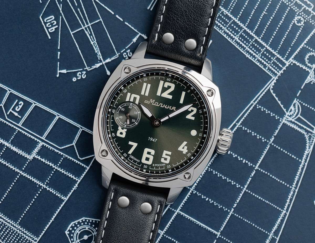 Мужские механические часы с ручным подзаводом — это аксессуар от легендарного бренда «МОЛНИЯ», созданный на Челябинском часовом заводе. Корпус диаметром 42 мм выполнен из нержавеющей стали 316L с зеркальной полировкой. БезельБезельВнешний ободок, закрепляющий стекло. В спортивных часах так называется поворотное кольцо с делениями на циферблате, выполняет роль таймера – замеряет отрезки времени на шкале. Неподвижный безель – элемент декора. Однонаправленно вращающийся безель на дайверских часах позволяет фиксировать моменты погружения и выныривания на поверхность. также выполнен из стали с зеркальной отделкой. Циферблат зелёного цвета оформлен индексами и стрелками. Малая секундная стрелка вынесена на позицию 9 часов. Стрелки и метки с люминесцентным покрытиемЛюминесцентное покрытиеПозволяет считывать показания времени в темноте. Производители наносят на стрелки, часовые индексы, безель или поверхность циферблата светонакопительный состав, дающий холодное свечение. Super-LumiNova, обеспечивающим хорошую читаемость в темноте. Циферблат защищён сапфировым стекломСапфировое стеклоПрочный и надёжный материал из кристалла сапфира синтетического происхождения, характеризующийся особой твёрдостью и устойчивостью к царапинам и повреждениям. с антибликовым покрытиемАнтибликовое покрытиеСлой оксида металла в 0,13-0,3 микрон, благодаря которому стекло часов не бликует и не отражает свет. Антибликовое покрытие уменьшает отражение света в 10 раз, обеспечивая отличную читаемость показателей циферблата.. Механизм — мануфактурный калибр 3603, собранный вручную, с запасом хода до 40 часов. Прозрачная задняя крышка позволяет наблюдать за работой механизма. Часы оснащены кожаным ремешком чёрного цвета с белой отстрочкой и классической пряжкой. Водонепроницаемость 100 м позволяет использовать часы для плавания и повседневного ношения. Идеальный выбор для тех, кто ценит российское качество и традиции.