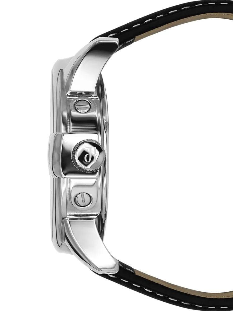 Ремешок выполнен из натуральной кожи чёрного цвета, обеспечивая комфорт при носке.  Толщина корпуса составляет 13 мм, что придаёт часам солидный вид.  Гарантия на модель составляет 2 года.