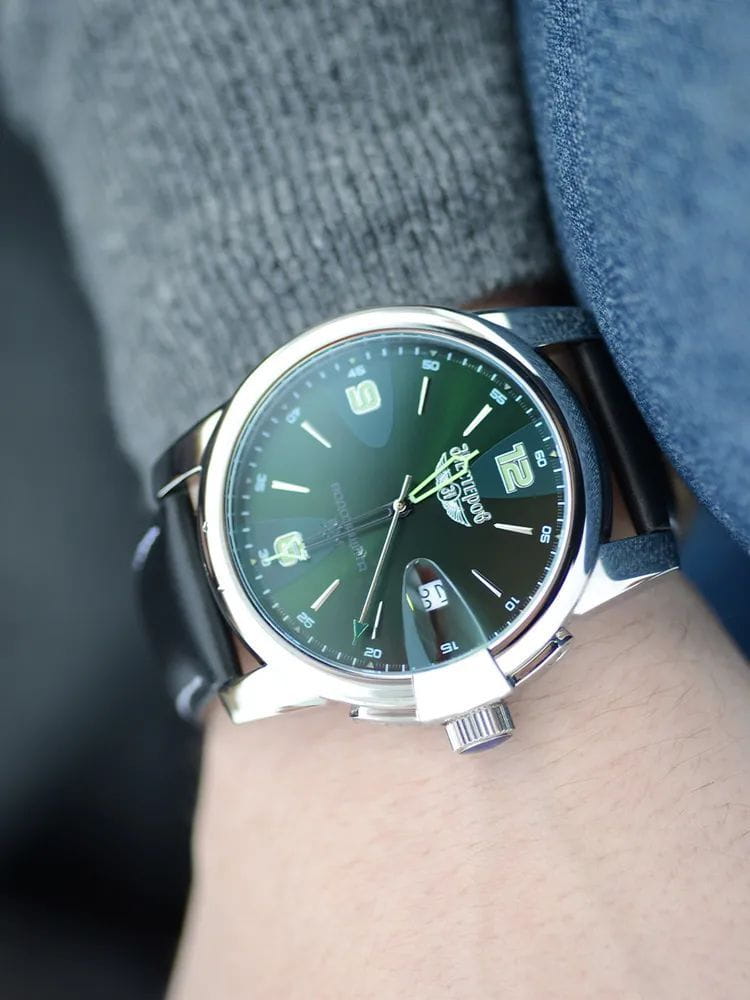 Модель Нестеров H0984B02-05N — это мужские наручные часы, сочетающие в себе классический дизайн и надёжность.  Корпус диаметром 45 мм выполнен из нержавеющей стали, подчёркивая прочность и элегантность конструкции. Зелёный циферблат с арабскими цифрами и индексами, обеспечивает отличную читаемость в любых условиях.