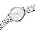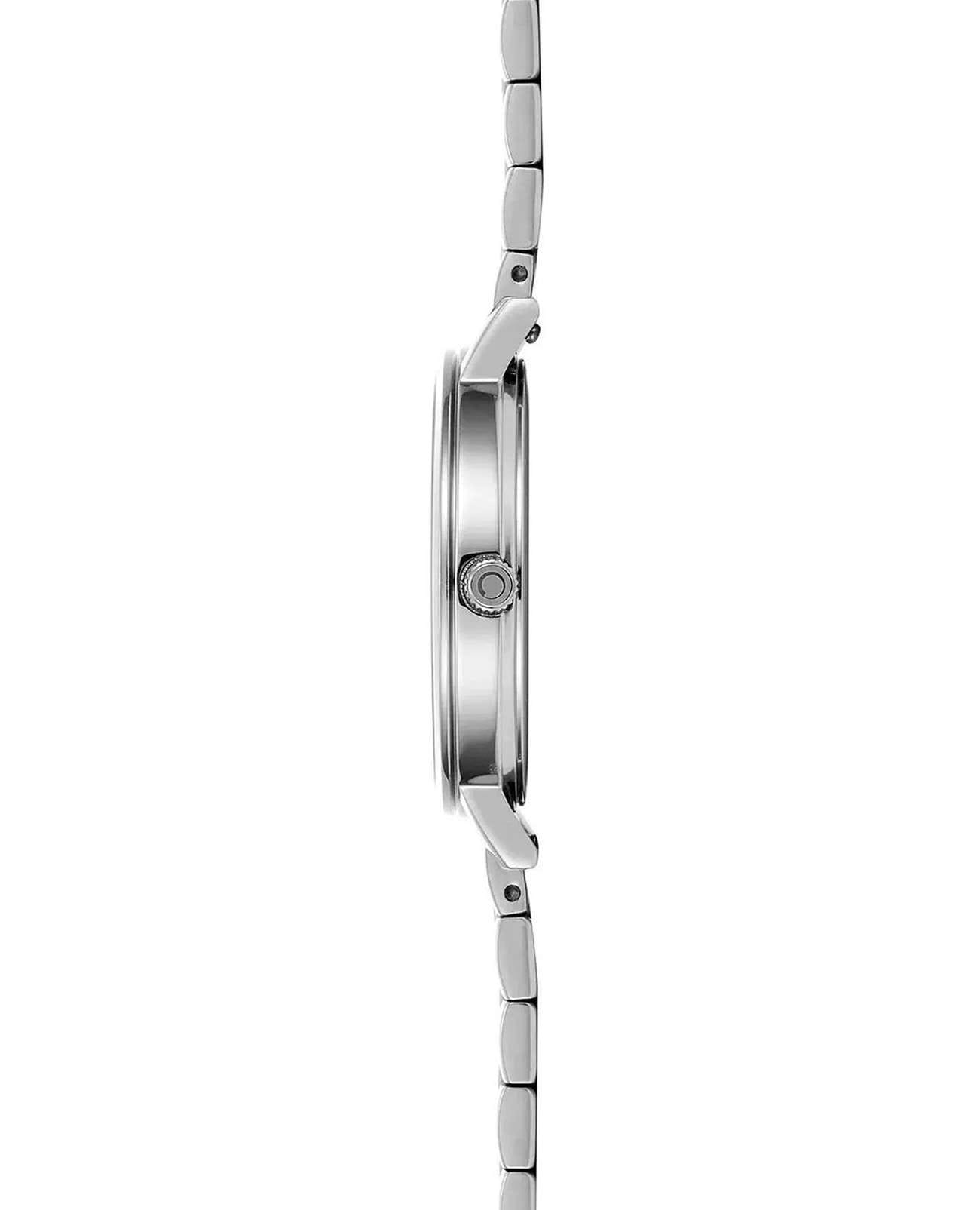 Женские наручные часы представляют собой элегантное сочетание классического дизайна и функциональности. Модель обладает круглым корпусом диаметром 32 мм, выполненным из нержавеющей стали, что обеспечивает прочность и устойчивость к внешним воздействиям. Браслет также изготовлен из нержавеющей стали, создавая уникальный стиль и комфорт при ношении. Циферблат защищен минеральным стекломМинеральное стеклоМинеральное стекло представляет собой искусственно выращенный минерал кварца. Такое стекло отличается особой устойчивостью к повреждениям и царапинам. Уступает по некоторым качествам сапфировому стеклу., которое обеспечивает надежную защиту от повреждений. Часы оснащены кварцевым механизмом с тремя стрелками, гарантирующим точность хода. Водонепроницаемость модели составляет 3 атмосферы, что позволяет использовать их в повседневной жизни, включая контакт с водой при мытье рук или дожде.