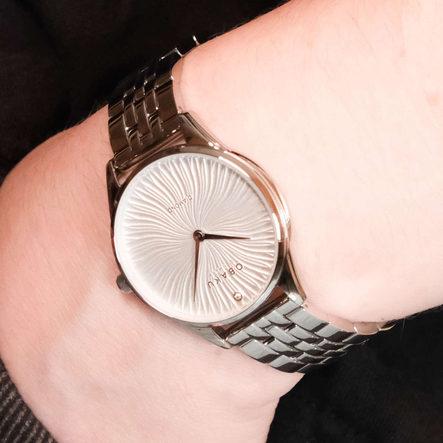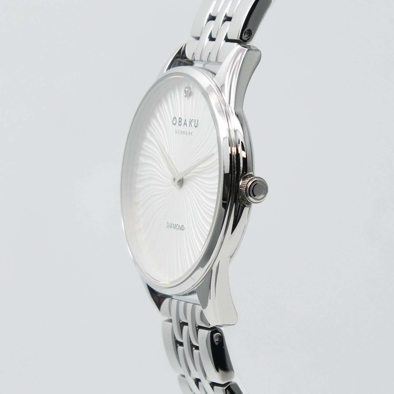 Женские наручные часы Obaku Diamond V297LXCISC кварцевый механизм с высокой точностью, настоящее воплощение элегантности и утонченности. Их дизайн завораживает с первого взгляда, сочетая в себе классическую лаконичность и современные акценты. Минеральное стеклоМинеральное стеклоМинеральное стекло представляет собой искусственно выращенный минерал кварца. Такое стекло отличается особой устойчивостью к повреждениям и царапинам. Уступает по некоторым качествам сапфировому стеклу. защищает циферблат от царапин, устойчивое к мелким механическим повреждениям. Корпус выполнен из нержавеющей стали серебристого цвета, диаметром 32 мм идеально сбалансирован и элегантен. Класс водозащиты: 30 метров позволит защитить корпус от случайных брызг или капель дождя. Стальной браслет на раскладной застежкеРаскладной замокДанный вариант застежки используется только на часах с металлическим браслетом. Отличительная особенность такого крепления в том, что длина браслета становится универсальной и вы можете самостоятельно отрегулировать нужный вам размер – застежка просто двигается по браслету часов. обеспечивает комфортное ношение. Часы украшены бриллиантом на 12 часов. Центральные часовая и минутная стрелки. Obaku Diamond – это не просто аксессуар, это заявление о вашем безупречном вкусе и стремлении к совершенству.