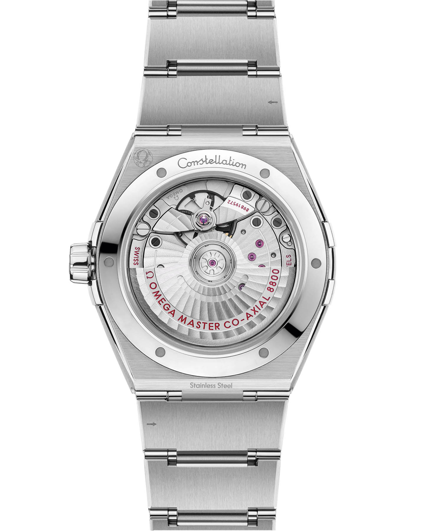 . Сердцем этих часов является коаксиальный хронометр OMEGA Master Chronometer Calibre 8800, который виден через куполообразное сапфировое стеклоСапфировое стеклоПрочный и надёжный материал из кристалла сапфира синтетического происхождения, характеризующийся особой твёрдостью и устойчивостью к царапинам и повреждениям., устойчивое к царапинам.