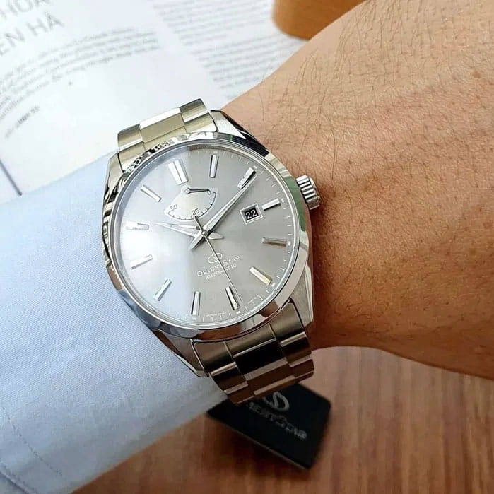 Мужские механические часы с автоподзаводом Orient Star RE-AU0404N0 — образец японского мастерства и современного дизайна. Корпус из нержавеющей стали, диаметром 42 мм. Циферблат — серый, с солнечной текстурой Sunray, штриховыми метками и окошком даты в положении 3 часов. Стекло — сапфировоеСапфировое стеклоПрочный и надёжный материал из кристалла сапфира синтетического происхождения, характеризующийся особой твёрдостью и устойчивостью к царапинам и повреждениям. с антибликовым покрытием. Ретроградный индикатор запаса хода до 50 часов, функция stop-second, ручной завод. Механизм — японский калибр F6N43 (22 камня, 21 600 пк/ч), магнитоустойчивый (4 800 А/м). Браслет — стальной на раскладной застёжкеРаскладная застёжкаТакой тип застёжки используется только на браслетах из металла. Она никогда не раскрывается полностью, происходит разделение на 2 и более частей. Раскладывающая застёжка снизит вероятность потери часов к минимуму.. Водонепроницаемость 50 м. Идеальный выбор для тех, кто ценит японское качество и современный стиль.