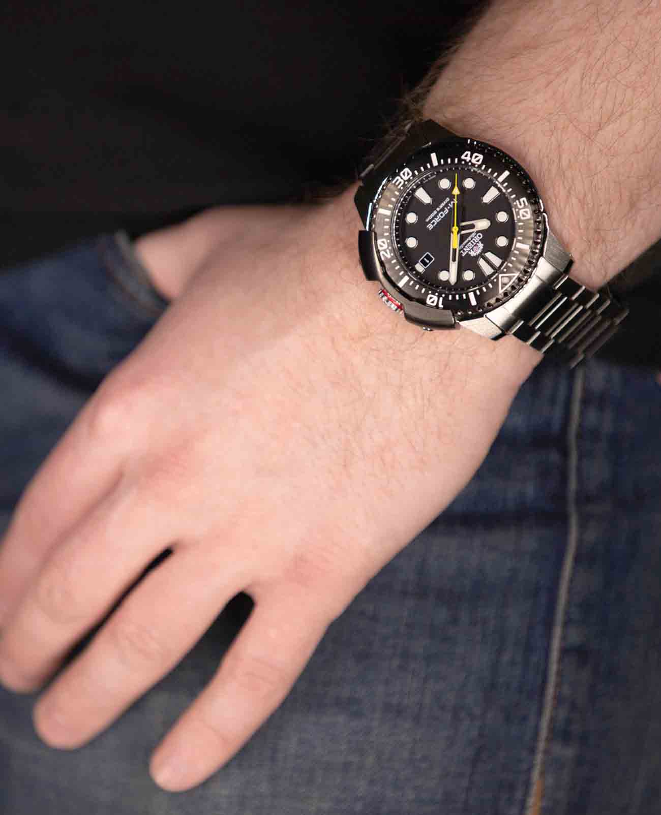 Мужские механические часы с автоподзаводом Orient M-Force RA-AC0L01B представляют собой идеальное сочетание стиля, функциональности и надежности. Эти часы созданы специально для любителей активного отдыха и водных видов спорта. Корпус и браслет часов изготовлены из высококачественной нержавеющей стали, которая обладает повышенной стойкостью к механическим повреждениям и коррозии. Циферблат защищен сапфировым стекломСапфировое стеклоПрочный и надёжный материал из кристалла сапфира синтетического происхождения, характеризующийся особой твёрдостью и устойчивостью к царапинам и повреждениям., известным своей исключительной прочностью и высокой прозрачностью. Это стекло имеет специальное антибликовое покрытие, благодаря чему циферблат остается четким и легко читаемым даже при ярком солнечном свете. БезельБезельВнешний ободок, закрепляющий стекло. В спортивных часах так называется поворотное кольцо с делениями на циферблате, выполняет роль таймера – замеряет отрезки времени на шкале. Неподвижный безель – элемент декора. Однонаправленно вращающийся безель на дайверских часах позволяет фиксировать моменты погружения и выныривания на поверхность. часов выполнен с использованием IP-покрытияIP-покрытиеМетод ионного напыления. Демонстрирует повышенную устойчивость к истиранию, окислению и химическим веществам. Под воздействием высокого давления и температуры около 1500°C молекулы металла надёжно соединяются с частицами корпуса часов., что значительно увеличивает его износостойкость и защищает от царапин. Он плавно вращается в одном направлении, обеспечивая точность измерения времени погружения.На циферблате расположено окошко дня недели и даты, находящееся в положении 3 часа. Этот элемент придает часам дополнительную функциональность и удобство в использовании. Механизм часов оснащен 22 камнями, что обеспечивает высокую точность работы и долговечность устройства. Частота колебаний механизма составляет 21600 полуколебаний в час, а запас хода достигает 40 часов, что позволяет часам работать без необходимости ежедневного завода. Для обеспечения отличной видимости в темное время суток стрелки и метки покрыты люминесцентным покрытиемЛюминесцентное покрытиеПозволяет считывать показания времени в темноте. Производители наносят на стрелки, часовые индексы, безель или поверхность циферблата светонакопительный состав, дающий холодное свечение., которое светится в темноте, облегчая считывание показаний. Класс водонепроницаемости этих часов составляет 200 метров, что делает их подходящими для плавания, дайвинга и других водных видов спорта. Браслет часов изготовлен из нержавеющей стали и оснащен раскладной застежкойРаскладная застёжкаТакой тип застёжки используется только на браслетах из металла. Она никогда не раскрывается полностью, происходит разделение на 2 и более частей. Раскладывающая застёжка снизит вероятность потери часов к минимуму., которая обеспечивает надежную фиксацию на запястье и удобство использования. Эта модель часов станет надежным спутником в любых приключениях и подчеркнет ваш стиль и любовь к активным видам отдыха.