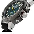 Мужские механические часы с автоподзаводом. Калибр механизма F6722 на 22 камнях. Частота 21 600 полуколебаний в час. Запас хода 40 часов. Центральные часовая, минутная и секундная стрелки. Апертура даты в позиции 3 часов. Синий циферблат. Люминесцентные стрелки и часовые индексы. Круглый корпус выполнен из нержавеющей стали с частичным черным PVD покрытием по безелю. Диаметр корпуса составляет 45 мм. Заводная головка с защитой. Черный каучуковый ремешок, стандартная застежка. Устойчивое к возникновению царапин сапфировое стекло с антибликовым покрытием. Водостойкость WR 200 (погружение с аквалангом).