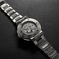 Многокомпонентный корпус из нержавеющей стали, керамический безельБезельВнешний ободок, закрепляющий стекло. В спортивных часах так называется поворотное кольцо с делениями на циферблате, выполняет роль таймера – замеряет отрезки времени на шкале. Неподвижный безель – элемент декора. Однонаправленно вращающийся безель на дайверских часах позволяет фиксировать моменты погружения и выныривания на поверхность. с минутной шкалой. Сапфировое стеклоСапфировое стеклоПрочный и надёжный материал из кристалла сапфира синтетического происхождения, характеризующийся особой твёрдостью и устойчивостью к царапинам и повреждениям., выпуклое с обеих сторон, внутреннее антибликовое покрытие. Прозрачная задняя крышка из сапфирового стеклаСапфировое стеклоПрочный и надёжный материал из кристалла сапфира синтетического происхождения, характеризующийся особой твёрдостью и устойчивостью к царапинам и повреждениям.. Стрелки и метки с люминесцентным покрытиемЛюминесцентное покрытиеПозволяет считывать показания времени в темноте. Производители наносят на стрелки, часовые индексы, безель или поверхность циферблата светонакопительный состав, дающий холодное свечение.. Завинчивающаяся заводная головка.