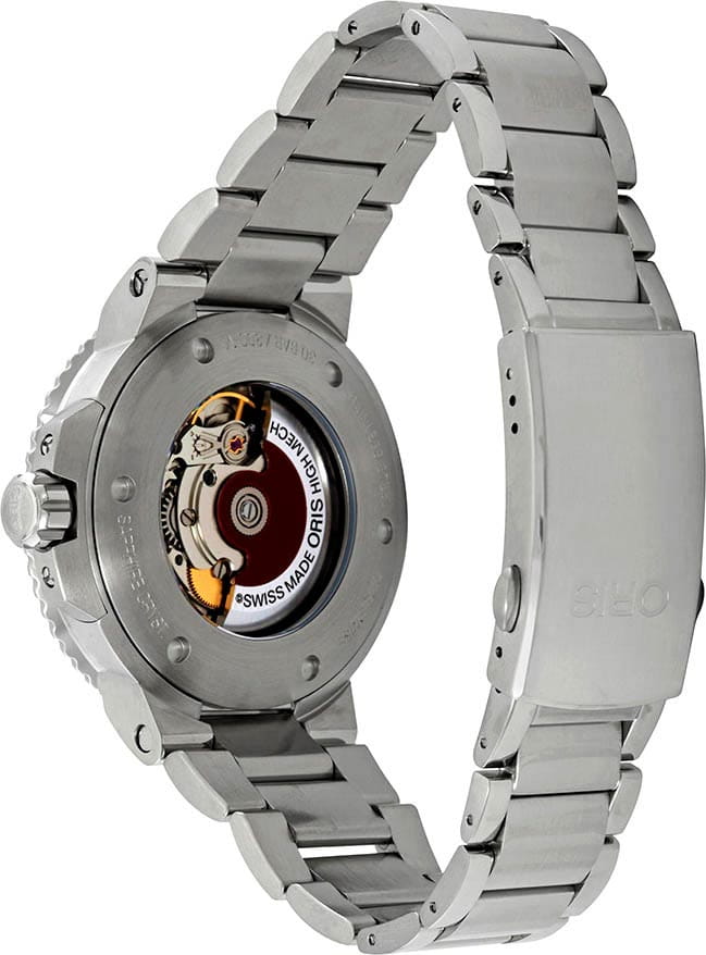 Механизм Oris 733 (на базе SW 200-1) — это автоматический механизм с автоподзаводом, который работает от движения руки и гарантирует точный ход. Часы оснащены центральной секундной стрелкой и окошком даты, добавляющим удобства в использовании. Стрелки и метки имеют люминесцентное покрытиеЛюминесцентное покрытиеПозволяет считывать показания времени в темноте. Производители наносят на стрелки, часовые индексы, безель или поверхность циферблата светонакопительный состав, дающий холодное свечение., что позволяет легко определять время даже в темноте.