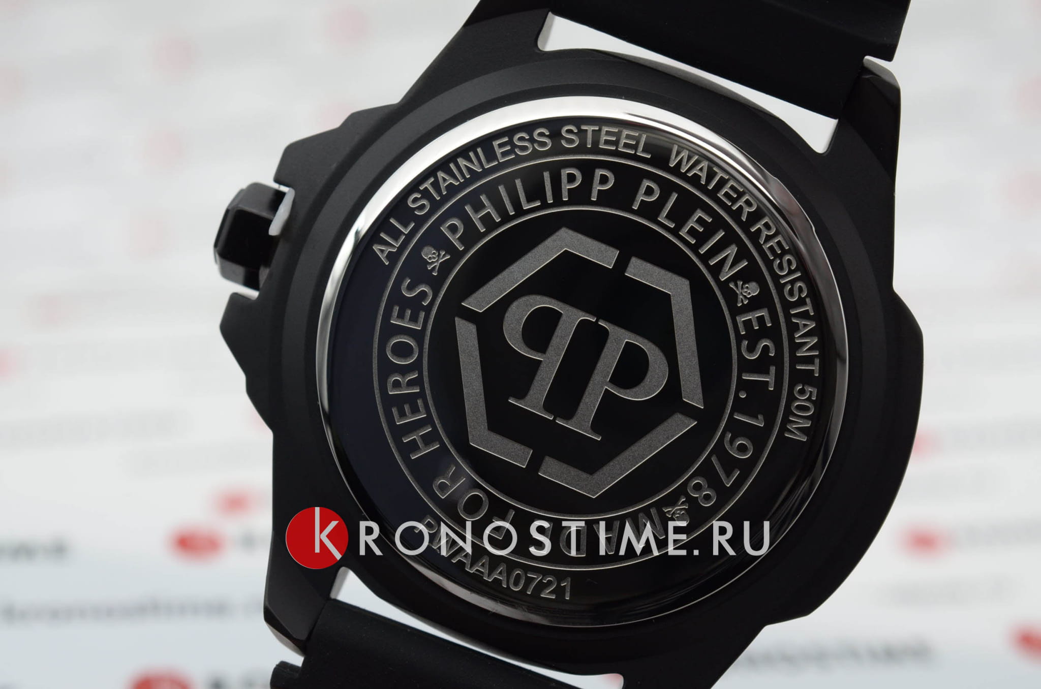 Яркие мужские часы с минеральным стекломМинеральное стеклоМинеральное стекло представляет собой искусственно выращенный минерал кварца. Такое стекло отличается особой устойчивостью к повреждениям и царапинам. Уступает по некоторым качествам сапфировому стеклу. Philipp Plein The Skull PWAAA0721, кварцевый механизм с высокой точностью. Класс водозащиты: 50 метров, позволит защитить корпус от случайных брызг или капель дождя. Корпус часов изготовлен из стали с IP-покрытиемIP-покрытиеМетод ионного напыления. Демонстрирует повышенную устойчивость к истиранию, окислению и химическим веществам. Под воздействием высокого давления и температуры около 1500°C молекулы металла надёжно соединяются с частицами корпуса часов..