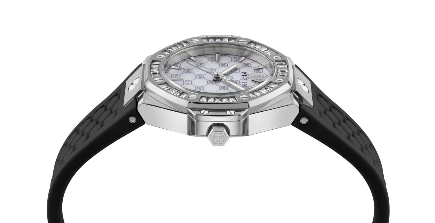 Женские кварцевые часы Philipp Plein Plein Royal Prestige PW4FA0325 — это стильное сочетание элегантности и современного дизайна. Изящный корпус выполнен из нержавеющей стали серебристого цвета, диаметром 33 мм, что придаст образу женственности и романтизма. Изысканный циферблат с метками в виде штрихов придает модели особый блеск. Циферблат защищен минеральным стекломМинеральное стеклоМинеральное стекло представляет собой искусственно выращенный минерал кварца. Такое стекло отличается особой устойчивостью к повреждениям и царапинам. Уступает по некоторым качествам сапфировому стеклу., обеспечивающий устойчивость к царапинам. БезельБезельВнешний ободок, закрепляющий стекло. В спортивных часах так называется поворотное кольцо с делениями на циферблате, выполняет роль таймера – замеряет отрезки времени на шкале. Неподвижный безель – элемент декора. Однонаправленно вращающийся безель на дайверских часах позволяет фиксировать моменты погружения и выныривания на поверхность. инкрустирован кристаллами. Стрелки с люминесцентным покрытиемЛюминесцентное покрытиеПозволяет считывать показания времени в темноте. Производители наносят на стрелки, часовые индексы, безель или поверхность циферблата светонакопительный состав, дающий холодное свечение.. Часы оснащены надежным кварцевым механизмом. Силиконовый ремешок на стандартной застёжке, гарантирует комфортное и безопасное ношение. Класс водозащиты: 50 метров позволит защитить корпус от случайных брызг или капель дождя. Phlipp Plein — отличный выбор для тех, кто ценит яркость и качество.