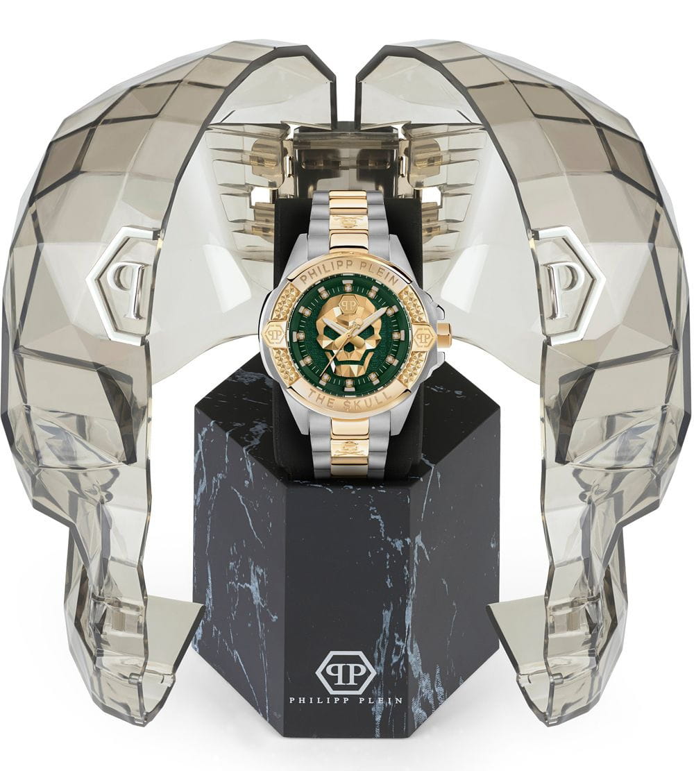 Яркие унисекс часы с минеральным стекломМинеральное стеклоМинеральное стекло представляет собой искусственно выращенный минерал кварца. Такое стекло отличается особой устойчивостью к повреждениям и царапинам. Уступает по некоторым качествам сапфировому стеклу. Philipp Plein The Skull PWNAA0622, кварцевый механизм с высокой точностью. Класс водозащиты: 50 метров, позволит защитить корпус от случайных брызг или капель дождя. Корпус часов изготовлен из стали с IP-покрытиемIP-покрытиеМетод ионного напыления. Демонстрирует повышенную устойчивость к истиранию, окислению и химическим веществам. Под воздействием высокого давления и температуры около 1500°C молекулы металла надёжно соединяются с частицами корпуса часов.. Круглый стальной корпус.. Циферблат дополнен трехмерным граненым черепом. Шестигранная заводная головка с защитой. Застёжка бабочка с кнопкамиЗастёжка "бабочка"Такой вид застёжки дополняется предохранителями, помогающими избежать случайного раскрытия браслета. Обладают изящным исполнением. .