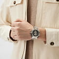 Philipp Plein The $kull Spikes PWPWA0624 — мужские кварцевые часы, сочетающие смелый дизайн и функциональность. Корпус диаметром 45 мм выполнен из нержавеющей стали что обеспечивает стильный внешний вид и долговечность. Минеральное стеклоМинеральное стеклоМинеральное стекло представляет собой искусственно выращенный минерал кварца. Такое стекло отличается особой устойчивостью к повреждениям и царапинам. Уступает по некоторым качествам сапфировому стеклу. защищает циферблат от царапин и повреждений. Чёрный циферблат с изображением черепа подчёркивает дерзкий дух бренда. Чёткие стрелки и индексы обеспечивают удобство считывания времени. Часы оснащены кварцевым механизмом, гарантирующим точность хода. Браслет выполнен из серебристой нержавеющей стали, что обеспечивает комфортное прилегание к запястью на застёжке-бабочке с кнопкамиЗастёжка "бабочка"Такой вид застёжки дополняется предохранителями, помогающими избежать случайного раскрытия браслета. Обладают изящным исполнением. и гарантирует надёжную фиксацию. Водозащита до 5 ATM (50 метров) делает часы подходящими для повседневного использования. Philipp Plein The $kull Spikes PWPWA0624 — это стильный аксессуар для мужчин, которые ценят уникальный дизайн и качество.
