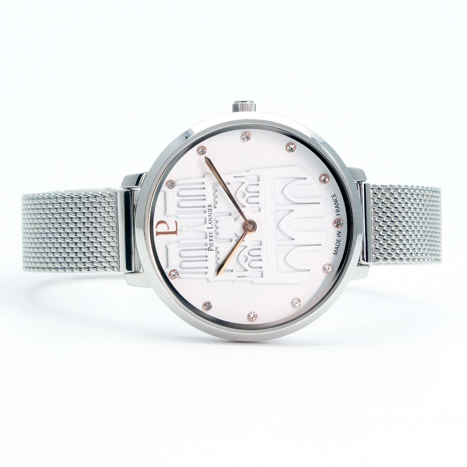Pierre Lannier Coeur Battant 095N601 — утончённая женская модель, объединяющая элегантную визуальную лёгкость и выразительный технический штрих. Корпус диаметром 33 мм выполнен из нержавеющей стали с полированным блеском, подчёркивающим изящность формы.