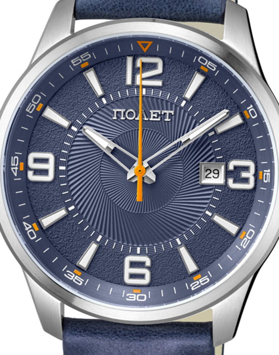 Poljot 2115.471324 — стильные кварцевые часы, сочетающие современную энергию и традиционное качество российского часового производства. Корпус из нержавеющей стали надёжно защищает кварцевый механизм, обеспечивающий плавный и точный ход. Циферблат украшен гильошированным узором и крупными арабскими цифрами, подчёркивающими отличную читаемость. Акценты придают модели динамичность, а стрелки с люминесцентным покрытиемЛюминесцентное покрытиеПозволяет считывать показания времени в темноте. Производители наносят на стрелки, часовые индексы, безель или поверхность циферблата светонакопительный состав, дающий холодное свечение. позволяют легко считывать время в темноте. Окно даты на позиции «3 часов» добавляет функциональности, сохраняя гармонию дизайна. Прочное минеральное стеклоМинеральное стеклоМинеральное стекло представляет собой искусственно выращенный минерал кварца. Такое стекло отличается особой устойчивостью к повреждениям и царапинам. Уступает по некоторым качествам сапфировому стеклу. защищает циферблат от царапин, а ремешок из натуральной кожи с декоративной прострочкой обеспечивает комфорт и изысканный вид. Poljot — выбор уверенного мужчины, ценящего надёжность механики, лаконичность и энергичный характер деталей.