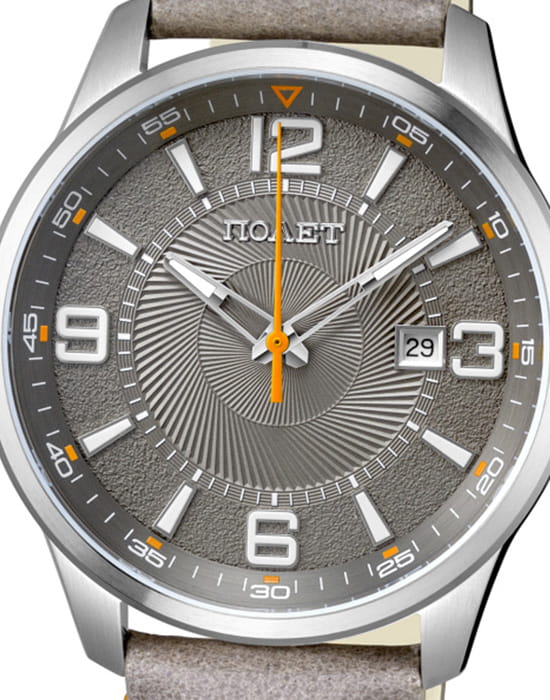 Poljot 2115.471325 — стильные кварцевые часы, сочетающие современную энергию и традиционное качество российского часового производства. Корпус из нержавеющей стали надёжно защищает кварцевый механизм, обеспечивающий плавный и точный ход. Циферблат украшен гильошированным узором и крупными арабскими цифрами, подчёркивающими отличную читаемость. Акценты придают модели динамичность, а стрелки с люминесцентным покрытиемЛюминесцентное покрытиеПозволяет считывать показания времени в темноте. Производители наносят на стрелки, часовые индексы, безель или поверхность циферблата светонакопительный состав, дающий холодное свечение. позволяют легко считывать время в темноте. Окно даты на позиции «3 часов» добавляет функциональности, сохраняя гармонию дизайна. Прочное минеральное стеклоМинеральное стеклоМинеральное стекло представляет собой искусственно выращенный минерал кварца. Такое стекло отличается особой устойчивостью к повреждениям и царапинам. Уступает по некоторым качествам сапфировому стеклу. защищает циферблат от царапин, а ремешок из натуральной кожи с декоративной прострочкой обеспечивает комфорт и изысканный вид. Poljot — выбор уверенного мужчины, ценящего надёжность механики, лаконичность и энергичный характер деталей.