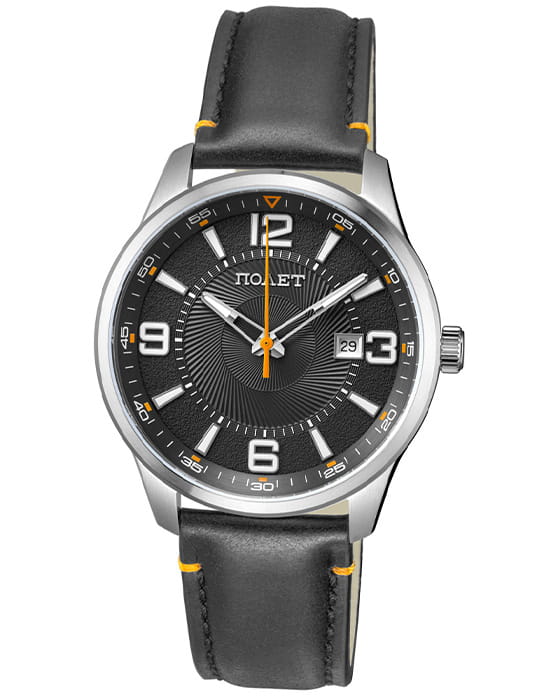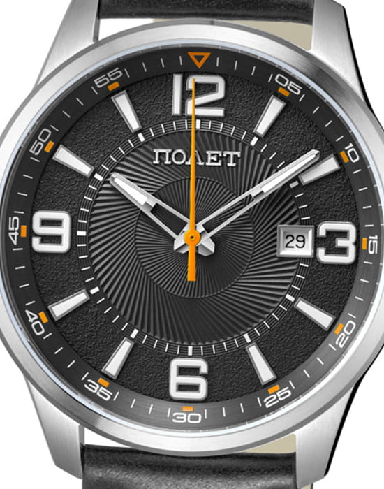 Poljot 2115.471326 — стильные кварцевые часы, сочетающие современную энергию и традиционное качество российского часового производства. Корпус из нержавеющей стали надёжно защищает кварцевый механизм, обеспечивающий плавный и точный ход. Циферблат украшен гильошированным узором и крупными арабскими цифрами, подчёркивающими отличную читаемость. Акценты придают модели динамичность, а стрелки с люминесцентным покрытиемЛюминесцентное покрытиеПозволяет считывать показания времени в темноте. Производители наносят на стрелки, часовые индексы, безель или поверхность циферблата светонакопительный состав, дающий холодное свечение. позволяют легко считывать время в темноте. Окно даты на позиции «3 часов» добавляет функциональности, сохраняя гармонию дизайна. Прочное минеральное стеклоМинеральное стеклоМинеральное стекло представляет собой искусственно выращенный минерал кварца. Такое стекло отличается особой устойчивостью к повреждениям и царапинам. Уступает по некоторым качествам сапфировому стеклу. защищает циферблат от царапин, а ремешок из натуральной кожи с декоративной прострочкой обеспечивает комфорт и изысканный вид. Poljot — выбор уверенного мужчины, ценящего надёжность механики, лаконичность и энергичный характер деталей.