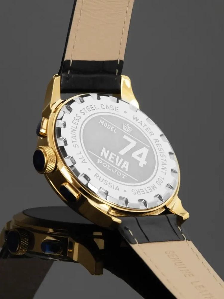 Poljot 6S21.746034 — классические мужские часы, в которых традиции российского часового мастерства сочетаются с современным дизайном. Корпус из нержавеющей стали с PVD-покрытиемPVDУльтратонкое покрытие наносится в технике вакуумного напыления, сочетает в себе нитрид титана особой прочности со слоем золота или оксида хрома. Несёт в себе декоративную или защитную функцию. подчёркивает солидность и надёжность модели, а насыщенный циферблат с лучевой текстурой придаёт образу выразительность и глубину. Два дополнительных счётчика хронографаХронографФункция позволяет измерять отрезки времени с особой точностью: часы, минуты, секунды. Верным признаком хронографа является наличие на циферблате 3 дополнительных окошек-счётчиков. обеспечивают точное измерение интервалов времени, дополняя функциональность часов. Контрастные стрелки и метки с люминесцентным покрытиемЛюминесцентное покрытиеПозволяет считывать показания времени в темноте. Производители наносят на стрелки, часовые индексы, безель или поверхность циферблата светонакопительный состав, дающий холодное свечение. обеспечивают отличную читаемость даже в условиях слабого освещения. Прочное минеральное стеклоМинеральное стеклоМинеральное стекло представляет собой искусственно выращенный минерал кварца. Такое стекло отличается особой устойчивостью к повреждениям и царапинам. Уступает по некоторым качествам сапфировому стеклу. защищает циферблат от царапин, а ремешок из натуральной кожи с классической пряжкой гарантирует комфорт и элегантную посадку на запястье. Poljot — это надёжный спутник современного мужчины, объединяющий точность, стиль и характер.