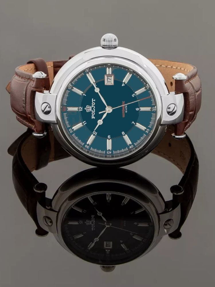 Poljot 8215.961156 “Baikal” — механические мужские часы с автоподзаводом, воплощающие традиции российского часового искусства и строгость классического дизайна. Крупный корпус из нержавеющей стали с характерными ушками придаёт модели мощный и узнаваемый силуэт, а насыщенный циферблат с аккуратной разметкой и окном даты на позиции «3 часов» подчёркивает лаконичность стиля. Механизм с автоподзаводом обеспечивает стабильную работу и плавное движение стрелок. Прочное минеральное стеклоМинеральное стеклоМинеральное стекло представляет собой искусственно выращенный минерал кварца. Такое стекло отличается особой устойчивостью к повреждениям и царапинам. Уступает по некоторым качествам сапфировому стеклу. надёжно защищает циферблат, а ремешок из натуральной кожи гарантирует комфорт и благородный внешний вид. Poljot — это часы для тех, кто ценит надёжность, традиции и спокойную уверенность в каждой детали.