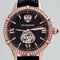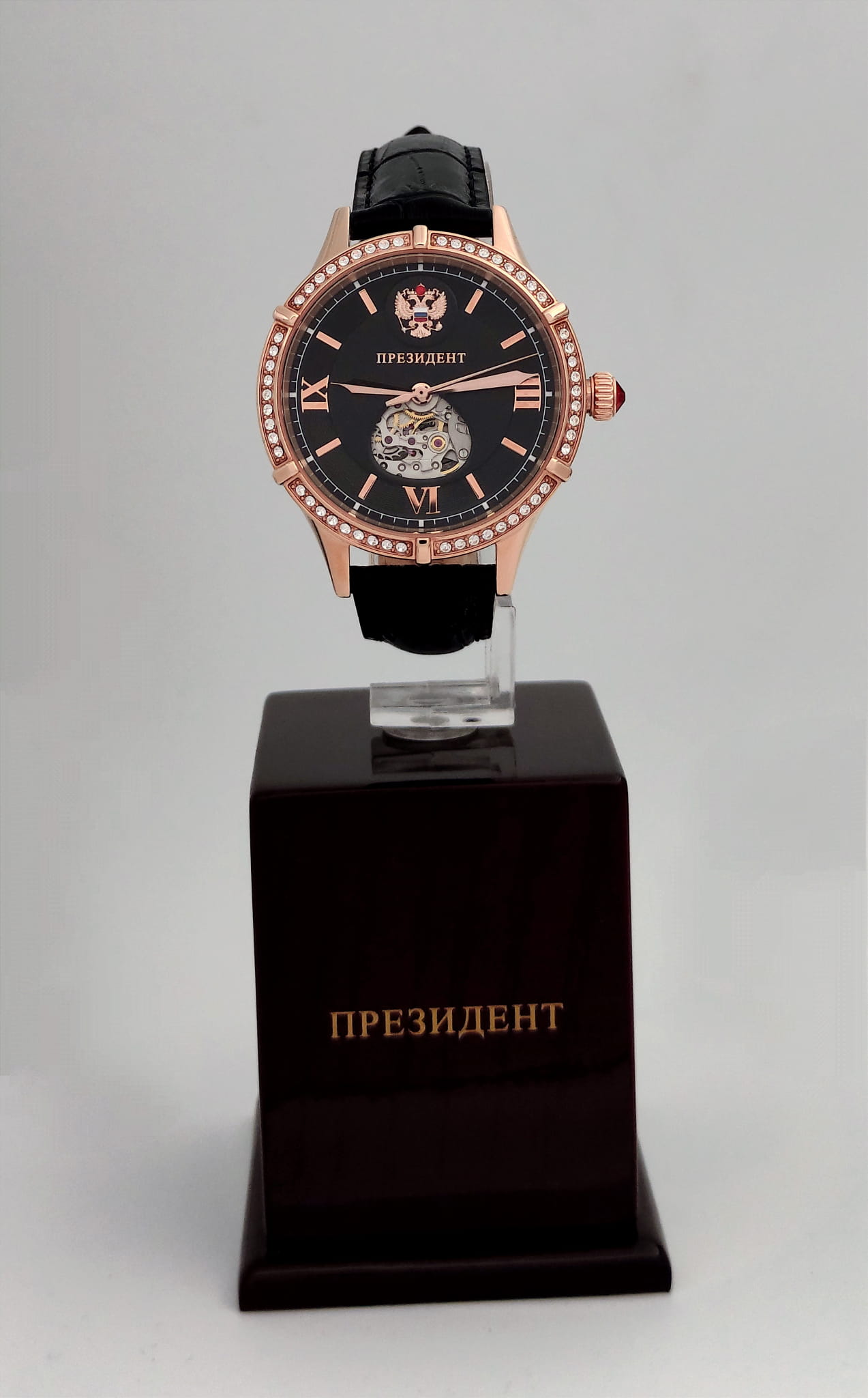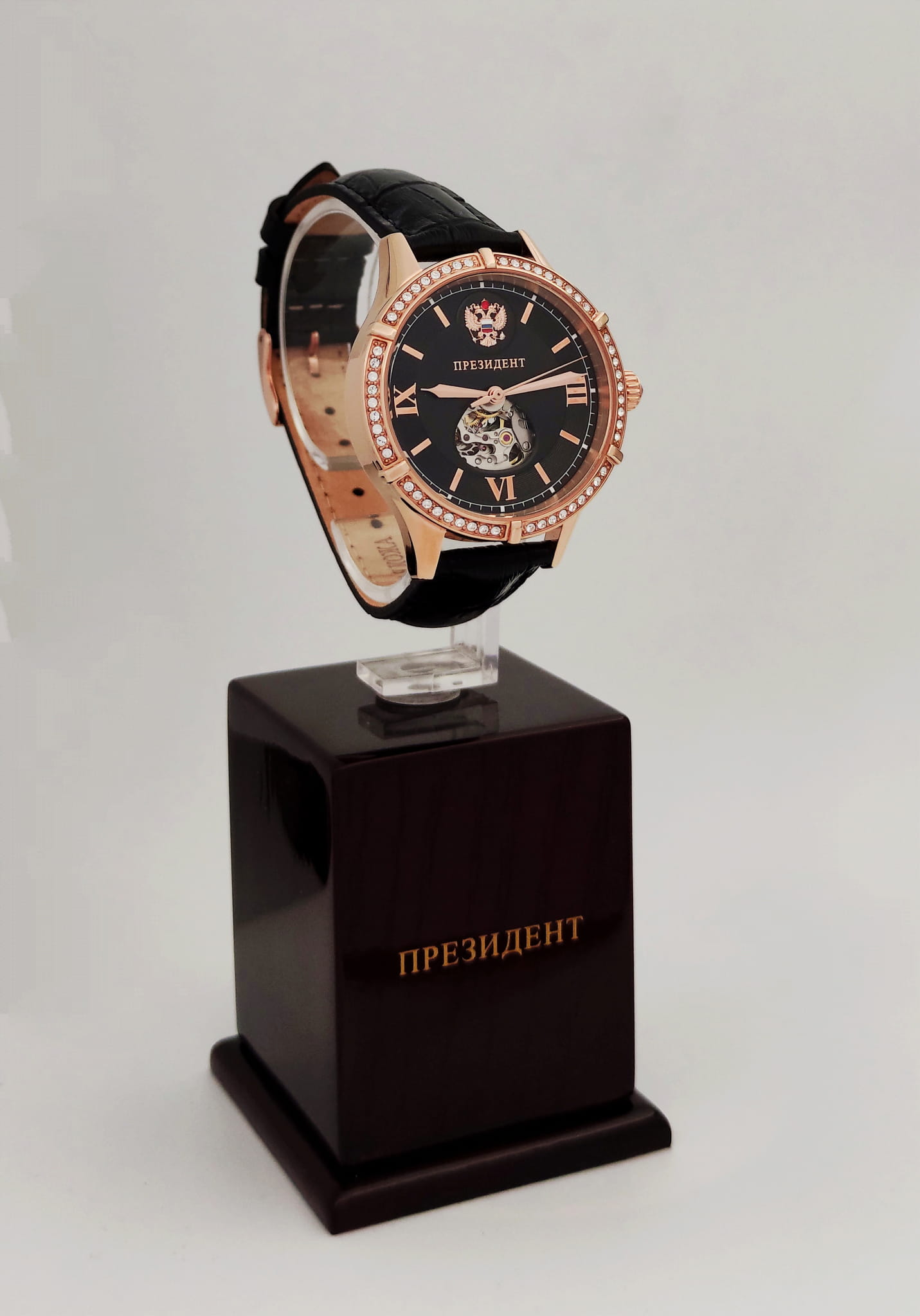 Часы «Президент» модели 4619160 — это женские механические наручные часы с автоподзаводом, сочетающие элегантный дизайн и надёжность. Механизм: японский механизм Miyota 6T28 с автоподзаводом, обеспечивающий точность и долговечность. Функции: часы, минуты, секунды. Корпус: из нержавеющей стали с PVD-покрытиемPVDУльтратонкое покрытие наносится в технике вакуумного напыления, сочетает в себе нитрид титана особой прочности со слоем золота или оксида хрома. Несёт в себе декоративную или защитную функцию., диаметром 36 мм инкрустирован кристаллами. Стекло: минеральноеМинеральное стеклоМинеральное стекло представляет собой искусственно выращенный минерал кварца. Такое стекло отличается особой устойчивостью к повреждениям и царапинам. Уступает по некоторым качествам сапфировому стеклу., устойчивое к царапинам. Водонепроницаемость: 3 ATM (30 метров), защищает от случайных брызг и дождя. Ремешок: кожаный, обеспечивающий комфорт при ношении. Эти часы идеально подойдут для женщин, ценящих сочетание стиля и функциональности.