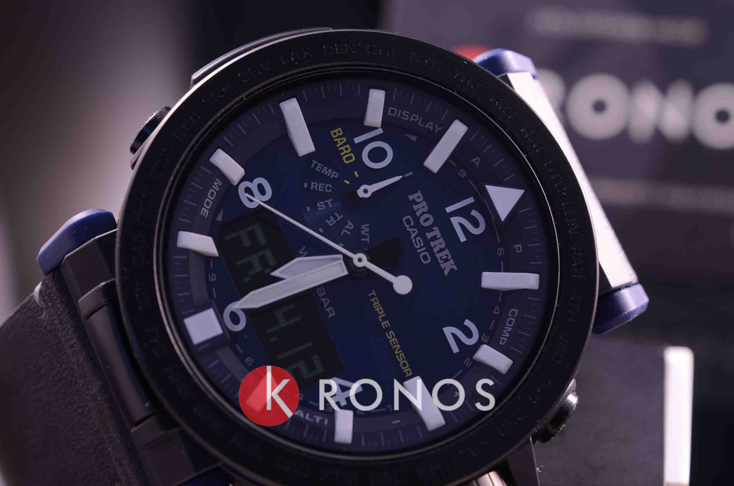 Брендовый аксессуар в синем исполнении включает в себя множество дополнительных функций, без которых не обойтись любителям приключений. Среди них высотомер, барометр, высокоточный термометр -10°C /+60°C, встроенный компас, хронографХронографФункция позволяет измерять отрезки времени с особой точностью: часы, минуты, секунды. Верным признаком хронографа является наличие на циферблате 3 дополнительных окошек-счётчиков., таймер, будильник, автоматический календарь, мировое времяМировое время Полезное часовое усложнение, отображающее время в основных городах и известных областях по всему миру, оно связано с часовыми поясами, удобно для путешественников и бизнесменов. – 29 часовых поясов, UTCUTCВсемирное кординационное время, не имеющее привязки к географическому положению Гринвича, основывается на атомном отсчёте времени. Регулировка времени осуществляется более точно, чем устаревшее GMT.