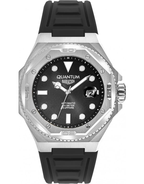 Мужские механические часы Quantum BAR1091.351. Сапфировое стеклоСапфировое стеклоПрочный и надёжный материал из кристалла сапфира синтетического происхождения, характеризующийся особой твёрдостью и устойчивостью к царапинам и повреждениям. устойчивое к появлению царапин, обладающее высокой прозрачностью. Класс водозащиты: 200 метров, позволит плавать, нырять и заниматься другими водными видами спорта. Корпус часов изготовлен из нержавеющей стали. Каучуковый ремешок. Окошко даты находится в положении 3 часов. Стрелки и метки с люминесцентным покрытиемЛюминесцентное покрытиеПозволяет считывать показания времени в темноте. Производители наносят на стрелки, часовые индексы, безель или поверхность циферблата светонакопительный состав, дающий холодное свечение..