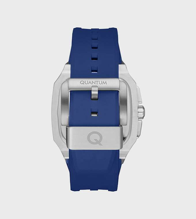 Мужские кварцевые часы Quantum из коллекции Hunter — крупные прямоугольные часы с ярким синим акцентом и функциональным хронографом. Корпус прямоугольный, из нержавеющей стали, размером 44 мм. БезельБезельВнешний ободок, закрепляющий стекло. В спортивных часах так называется поворотное кольцо с делениями на циферблате, выполняет роль таймера – замеряет отрезки времени на шкале. Неподвижный безель – элемент декора. Однонаправленно вращающийся безель на дайверских часах позволяет фиксировать моменты погружения и выныривания на поверхность. из нержавеющей стали с частичным PVD-покрытиемPVDУльтратонкое покрытие наносится в технике вакуумного напыления, сочетает в себе нитрид титана особой прочности со слоем золота или оксида хрома. Несёт в себе декоративную или защитную функцию.. Циферблат — синий с функциями хронографаХронографФункция позволяет измерять отрезки времени с особой точностью: часы, минуты, секунды. Верным признаком хронографа является наличие на циферблате 3 дополнительных окошек-счётчиков. и окошком даты. Стекло — минеральноеМинеральное стеклоМинеральное стекло представляет собой искусственно выращенный минерал кварца. Такое стекло отличается особой устойчивостью к повреждениям и царапинам. Уступает по некоторым качествам сапфировому стеклу. с антибликовым покрытием. Механизм — японский кварцевый Seiko. Водонепроницаемость 100 м. Ремешок — синий силиконовый на стандартной застёжке. Идеальный выбор для тех, кто ценит турецкий дизайн и спортивный стиль.
