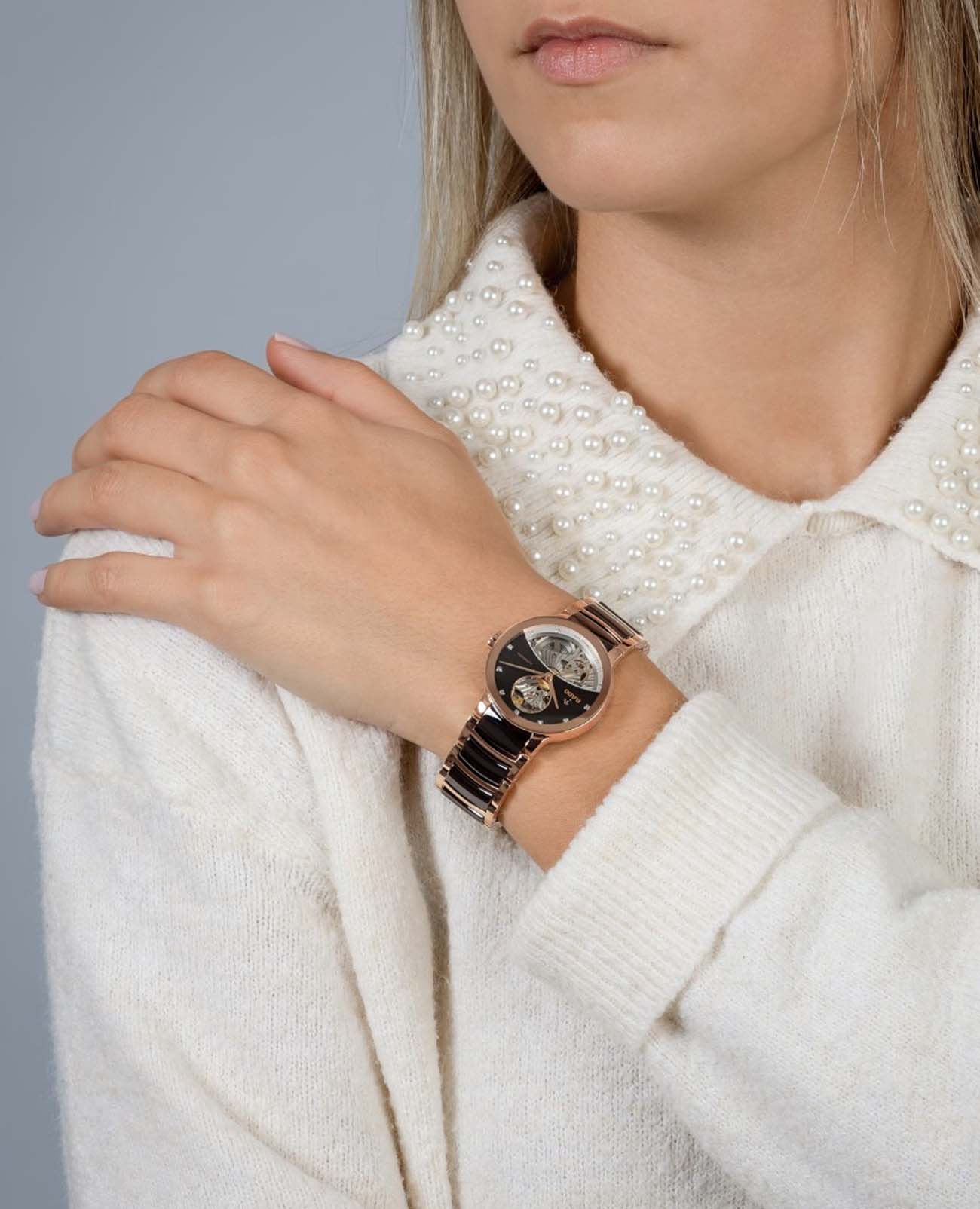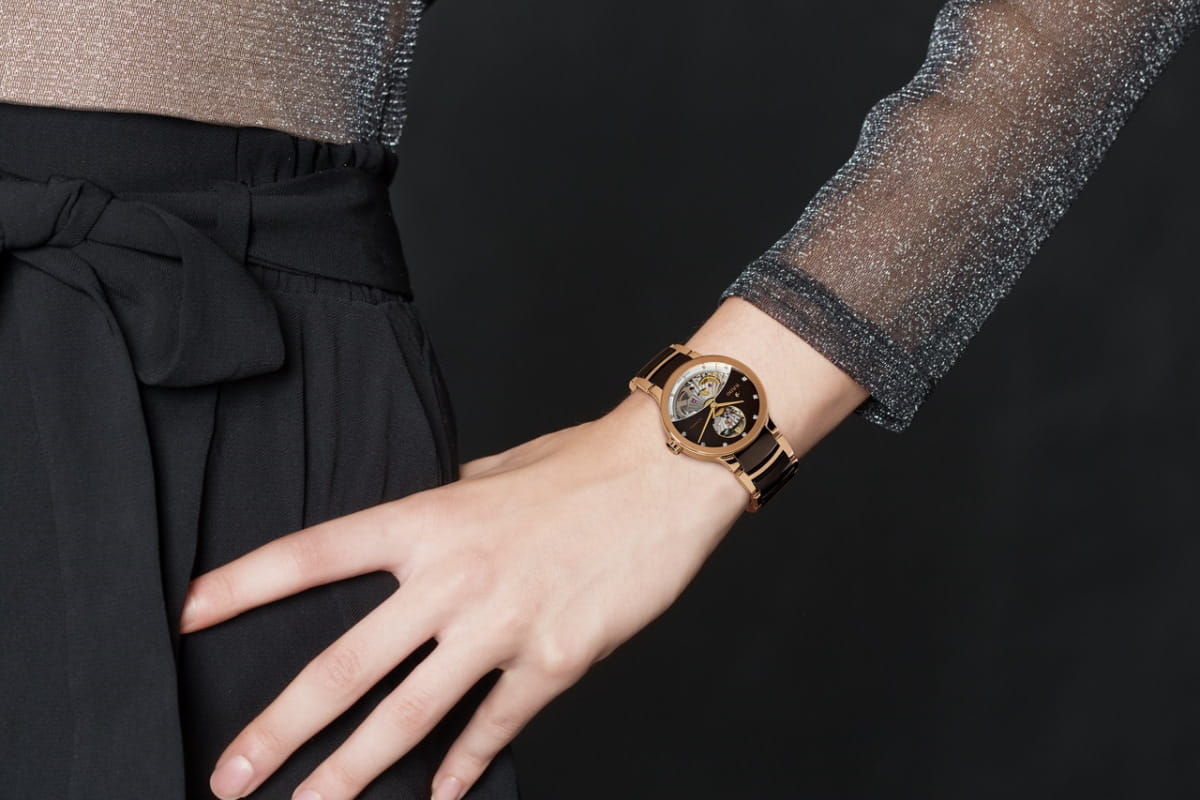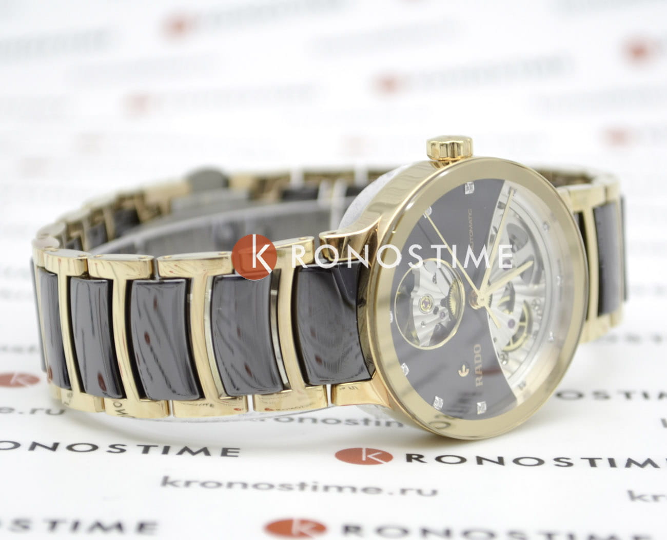 Швейцарские механические часы-скелетоны с автоподзаводом Rado Centrix Automatic Diamonds Open Heart R30248712. Сапфировое стеклоСапфировое стеклоПрочный и надёжный материал из кристалла сапфира синтетического происхождения, характеризующийся особой твёрдостью и устойчивостью к царапинам и повреждениям. устойчивое к мелким механическим повреждениям. Корпус часов изготовлен из нержавеющей стали с PVD-покрытиемPVDУльтратонкое покрытие наносится в технике вакуумного напыления, сочетает в себе нитрид титана особой прочности со слоем золота или оксида хрома. Несёт в себе декоративную или защитную функцию.. Класс водозащиты: 30 метров, позволит защитить корпус от случайных брызг или капель дождя. Браслет из стали PVD-покрытиемPVDУльтратонкое покрытие наносится в технике вакуумного напыления, сочетает в себе нитрид титана особой прочности со слоем золота или оксида хрома. Несёт в себе декоративную или защитную функцию. и высокотехнологичной керамикиВысокотехнологичная керамикаИнновационный запатентованный Rado материал с гладкой или матовой поверхностью. Керамика за счёт кристаллической структуры обладает повышенной устойчивостью от возникновения царапин. Материал способен принимать температуру тела человека, обеспечивая невероятный комфорт при ношении. на раскладной застёжкеРаскладная застёжкаТакой тип застёжки используется только на браслетах из металла. Она никогда не раскрывается полностью, происходит разделение на 2 и более частей. Раскладывающая застёжка снизит вероятность потери часов к минимуму..