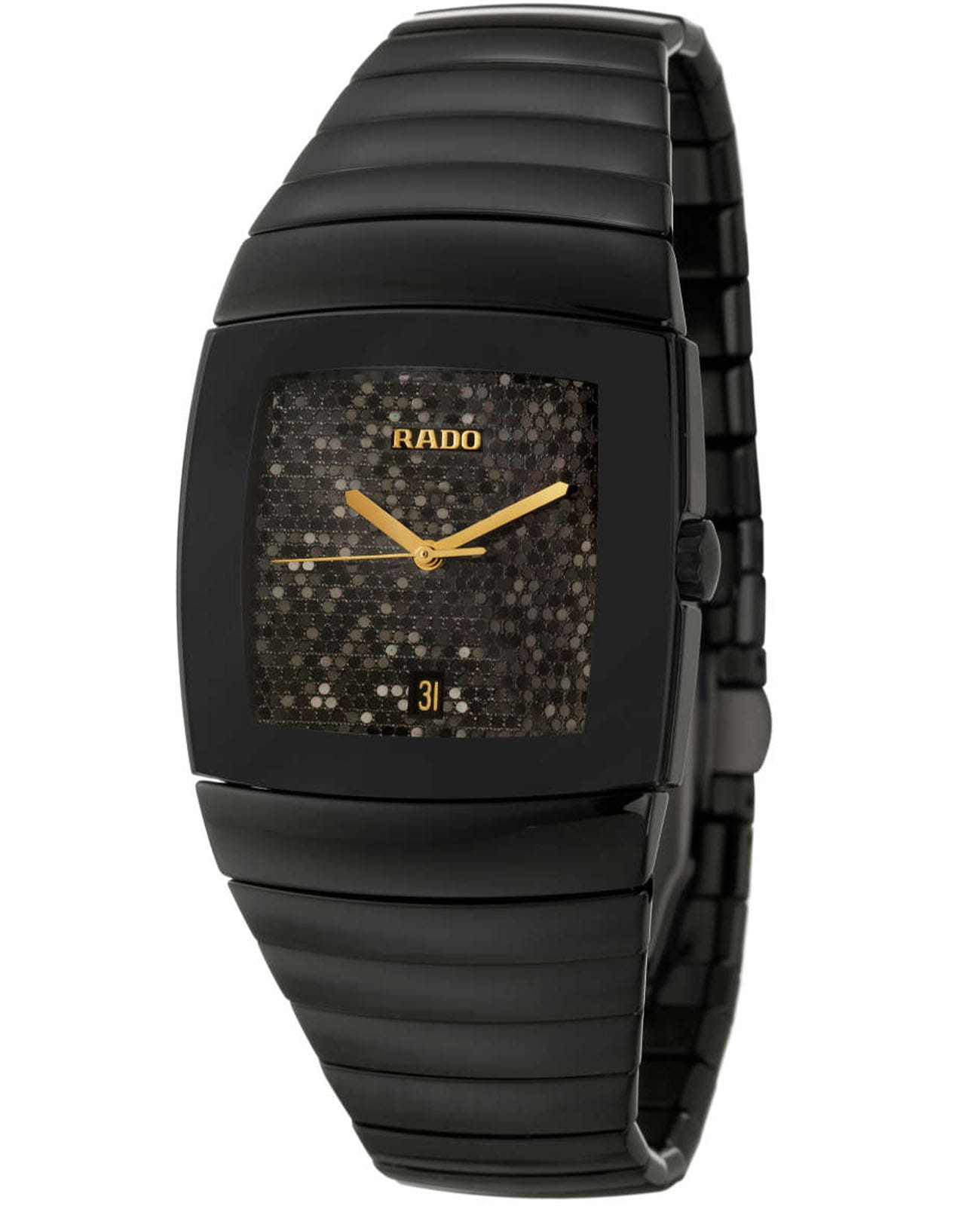Часы Rado Sintra R13723182, произведение искусства и технологическое чудо, станут прекрасным дополнением к коллекции любого мужчины. Эти швейцарские часы оснащены кварцевым механизмом с указателем даты и тремя стрелками, заключенным в бочкообразный корпус из высокотехнологичной керамикиВысокотехнологичная керамикаИнновационный запатентованный Rado материал с гладкой или матовой поверхностью. Керамика за счёт кристаллической структуры обладает повышенной устойчивостью от возникновения царапин. Материал способен принимать температуру тела человека, обеспечивая невероятный комфорт при ношении.. Сапфировое стеклоСапфировое стеклоПрочный и надёжный материал из кристалла сапфира синтетического происхождения, характеризующийся особой твёрдостью и устойчивостью к царапинам и повреждениям. устойчивое к появлению царапин, обладающее высокой прозрачностью. Класс водозащиты: 30 метров, позволит защитить корпус от случайных брызг или капель дождя. Браслет из высокотехнологичной керамикиВысокотехнологичная керамикаИнновационный запатентованный Rado материал с гладкой или матовой поверхностью. Керамика за счёт кристаллической структуры обладает повышенной устойчивостью от возникновения царапин. Материал способен принимать температуру тела человека, обеспечивая невероятный комфорт при ношении. на раскладной застёжкеРаскладная застёжкаТакой тип застёжки используется только на браслетах из металла. Она никогда не раскрывается полностью, происходит разделение на 2 и более частей. Раскладывающая застёжка снизит вероятность потери часов к минимуму..