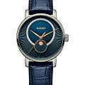 Премиальная модель станет главным украшением вашего образа, роскошный циферблат будет притягивать восторженные взгляды окружающих. Дизайн подразумевает размещение нескольких окружностей, декорированных перламутром и драгоценными камнями. 21 роскошный бриллиант в 0,060 карат точно затронут струны вашей души. Корпус выполнен из высокотехнологичной плазменной керамикиВысокотехнологичная плазменная керамикаИнновационный материал, технология запатентована. Выплавление керамики осуществляется в печи при 20 000 °C, белоснежный материал под воздействием ультравысокой температуры приобретает уникальный блеск, присущий металлам., это лёгкий и надёжный материал. Кварцевый высокоточный механизм ETA F05.841. Стекло из сапфира с антибликовым покрытием. Гравировка на задней крышке. Ремешок из натуральной кожи. Отображение фаз луны. Диаметр корпуса: 35 мм.