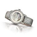 Дизайн модели является действительно роскошным - светлый циферблат дополнен двумя окружностями, декорированными сияющими драгоценными камнями. Безель украшен 60 бриллиантами, а скелетонизированное отверстие, сквозь которое просматривается движение деталей механизма, инкрустировано 5 бриллиантами в 0,004 и 0,002 карат. Часы оснащены автоматическим калибром ETA C07.631 с увеличенным резервом хода до 80 часов. Сапфировое стекло с антибликовой обработкой. Корпус из плазменной керамики