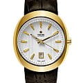 Мужские механические швейцарские часы Rado D-Star R15515105. Сапфировое стеклоСапфировое стеклоПрочный и надёжный материал из кристалла сапфира синтетического происхождения, характеризующийся особой твёрдостью и устойчивостью к царапинам и повреждениям. устойчивое к мелким механическим повреждениям. Корпус часов изготовлен из нержавеющей стали с PVD-покрытиемPVDУльтратонкое покрытие наносится в технике вакуумного напыления, сочетает в себе нитрид титана особой прочности со слоем золота или оксида хрома. Несёт в себе декоративную или защитную функцию.. Стрелки с люминесцентным покрытиемЛюминесцентное покрытиеПозволяет считывать показания времени в темноте. Производители наносят на стрелки, часовые индексы, безель или поверхность циферблата светонакопительный состав, дающий холодное свечение.. Окошко даты находится в положении 6 часов. Класс водозащиты: 100 метров, позволит плавать, нырять и заниматься другими водными видами спорта. Кожаный ремешок на раскладной застёжкеРаскладная застёжкаТакой тип застёжки используется только на браслетах из металла. Она никогда не раскрывается полностью, происходит разделение на 2 и более частей. Раскладывающая застёжка снизит вероятность потери часов к минимуму..