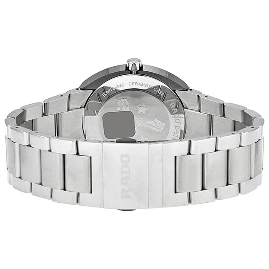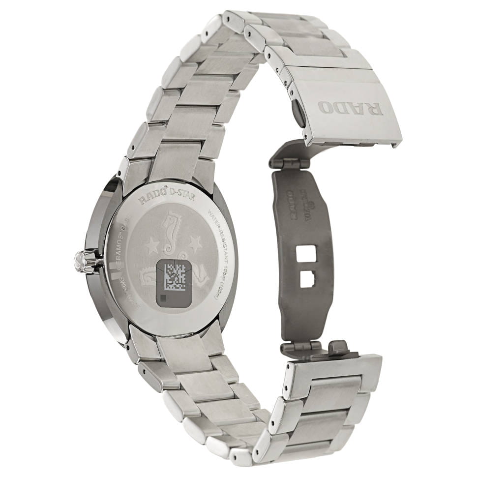 Мужские швейцарские часы Rado D-Star R15943123. Сапфировое стеклоСапфировое стеклоПрочный и надёжный материал из кристалла сапфира синтетического происхождения, характеризующийся особой твёрдостью и устойчивостью к царапинам и повреждениям. устойчивое к мелким механическим повреждениям. Корпус часов изготовлен из CeramosCeramosМатериал являет собой инновационное сочетание высокотехнологичной керамики и сплава металла. Он объединяет керамическую устойчивость к царапинам и металлический роскошный блеск. . Окошко даты находится в положении 3 часа. Класс водозащиты: 100 метров, позволит плавать, нырять и заниматься другими водными видами спорт. Браслет из нержавеющей стали на раскладной застёжкеРаскладная застёжкаТакой тип застёжки используется только на браслетах из металла. Она никогда не раскрывается полностью, происходит разделение на 2 и более частей. Раскладывающая застёжка снизит вероятность потери часов к минимуму..