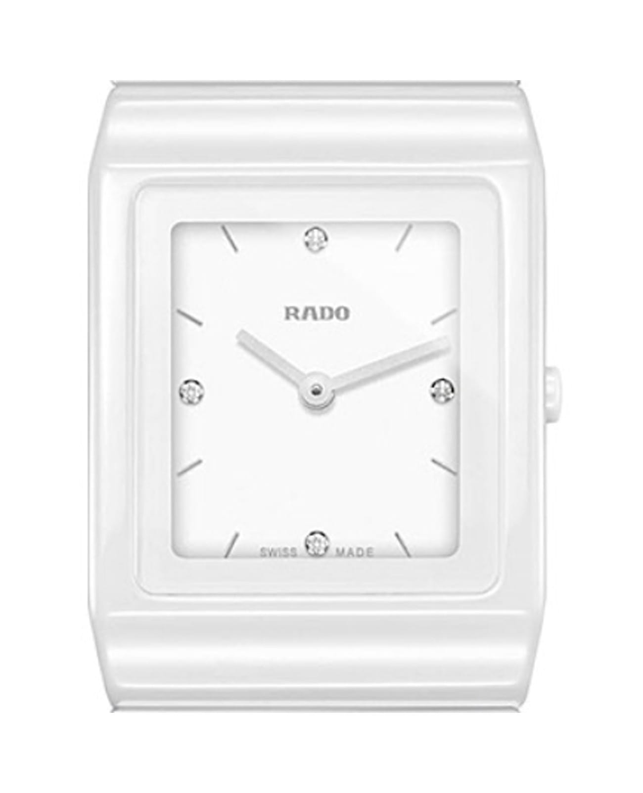 Швейцарские женские Rado Ceramica R21703712, кварцевый механизм с высокой точностью. Сапфировое стеклоСапфировое стеклоПрочный и надёжный материал из кристалла сапфира синтетического происхождения, характеризующийся особой твёрдостью и устойчивостью к царапинам и повреждениям. устойчивое к появлению царапин, обладающее высокой прозрачностью. Корпус часов изготовлен из высокотехнологичной керамикиВысокотехнологичная керамикаИнновационный запатентованный Rado материал с гладкой или матовой поверхностью. Керамика за счёт кристаллической структуры обладает повышенной устойчивостью от возникновения царапин. Материал способен принимать температуру тела человека, обеспечивая невероятный комфорт при ношении.. Циферблат украшен бриллиантами. Класс водозащиты: 30 метров, позволит защитить корпус от случайных брызг или капель дождя. Керамический браслет на застёжке-бабочке с кнопкамиЗастёжка "бабочка"Такой вид застёжки дополняется предохранителями, помогающими избежать случайного раскрытия браслета. Обладают изящным исполнением. .