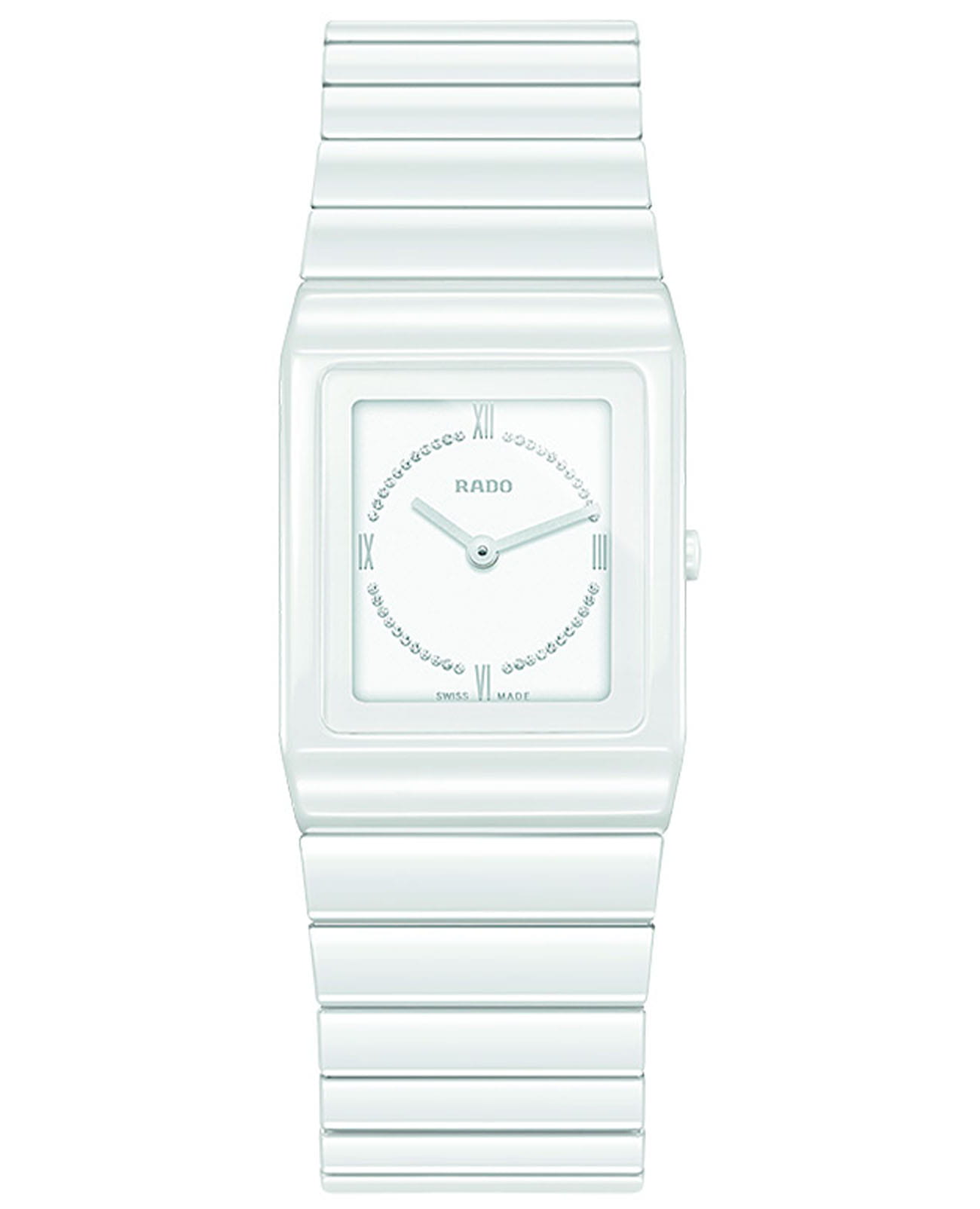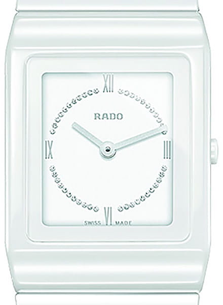 Швейцарские женские Rado Ceramica R21703732, кварцевый механизм с высокой точностью. Сапфировое стеклоСапфировое стеклоПрочный и надёжный материал из кристалла сапфира синтетического происхождения, характеризующийся особой твёрдостью и устойчивостью к царапинам и повреждениям. устойчивое к появлению царапин, обладающее высокой прозрачностью. Корпус часов изготовлен из высокотехнологичной керамикиВысокотехнологичная керамикаИнновационный запатентованный Rado материал с гладкой или матовой поверхностью. Керамика за счёт кристаллической структуры обладает повышенной устойчивостью от возникновения царапин. Материал способен принимать температуру тела человека, обеспечивая невероятный комфорт при ношении.. Циферблат украшен бриллиантами. Класс водозащиты: 30 метров, позволит защитить корпус от случайных брызг или капель дождя. Керамический браслет на застёжке-бабочке с кнопкамиЗастёжка "бабочка"Такой вид застёжки дополняется предохранителями, помогающими избежать случайного раскрытия браслета. Обладают изящным исполнением. .