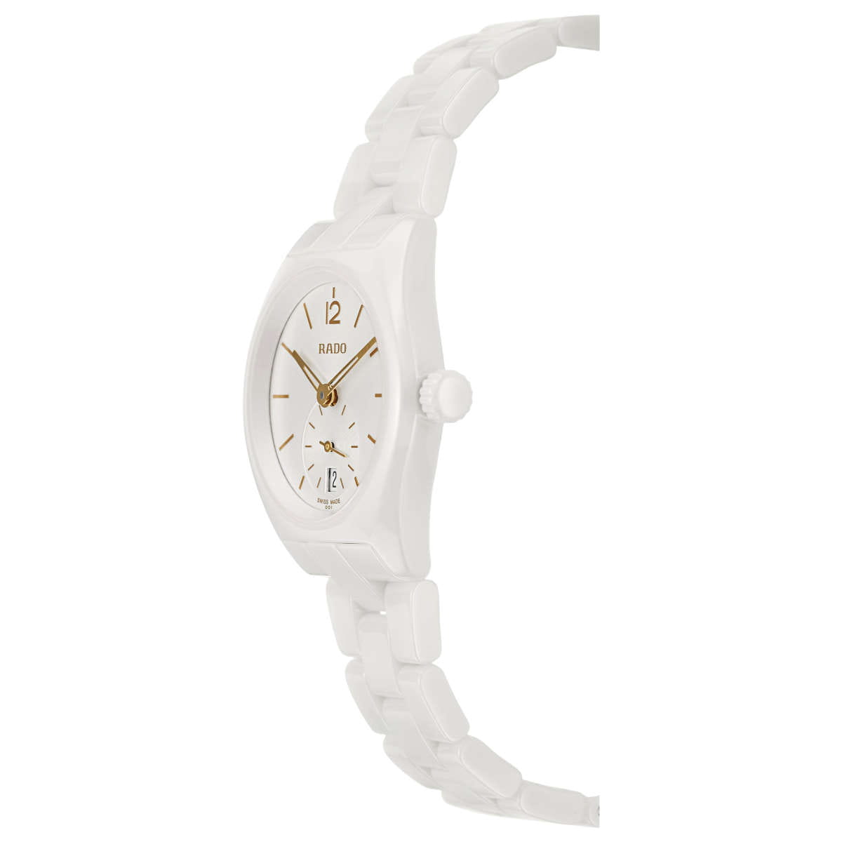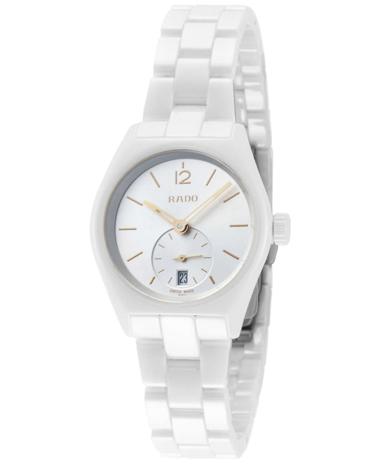 Женские кварцевые швейцарские часы Rado Specchio R27085012, кварцевый механизм с высокой точностью. Сапфировое стеклоСапфировое стеклоПрочный и надёжный материал из кристалла сапфира синтетического происхождения, характеризующийся особой твёрдостью и устойчивостью к царапинам и повреждениям. устойчивое к появлению царапин, обладающее высокой прозрачностью. Класс водозащиты: 50 метров, позволит защитить корпус от случайных брызг или капель дождя. Корпус и браслет часов изготовлены из керамики. Отображение даты в положении «6 часов». Браслет на раскладной застёжкеРаскладная застёжкаТакой тип застёжки используется только на браслетах из металла. Она никогда не раскрывается полностью, происходит разделение на 2 и более частей. Раскладывающая застёжка снизит вероятность потери часов к минимуму..