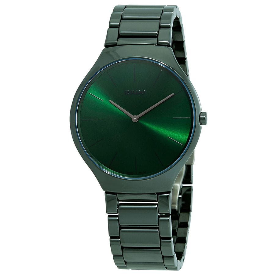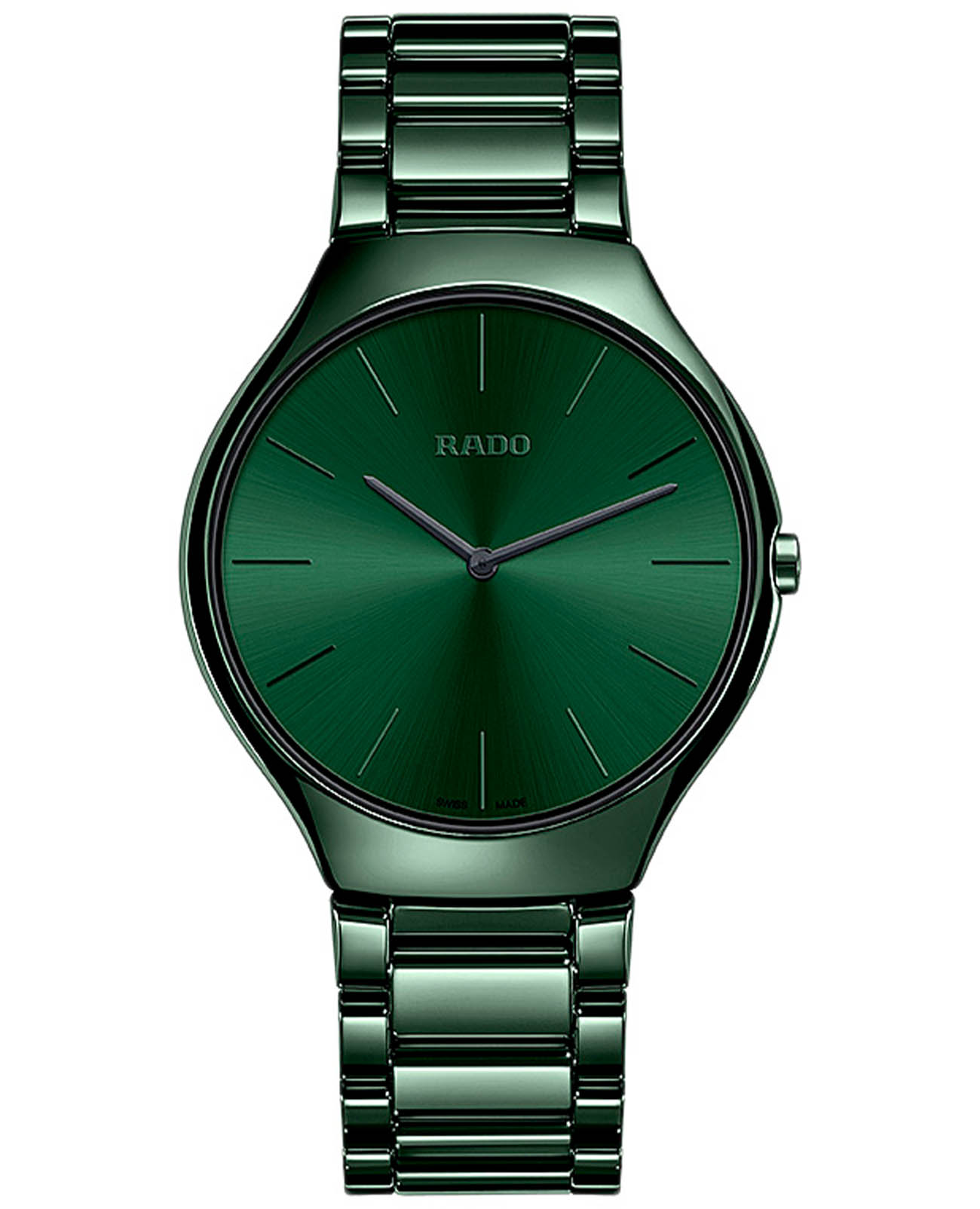Мужские кварцевые швейцарские часы Rado True R27264312. Корпус и браслет часов изготовлены из высокотехнологичной керамикиВысокотехнологичная керамикаИнновационный запатентованный Rado материал с гладкой или матовой поверхностью. Керамика за счёт кристаллической структуры обладает повышенной устойчивостью от возникновения царапин. Материал способен принимать температуру тела человека, обеспечивая невероятный комфорт при ношении.. Браслет на застёжке-бабочке с кнопкамиЗастёжка "бабочка"Такой вид застёжки дополняется предохранителями, помогающими избежать случайного раскрытия браслета. Обладают изящным исполнением. . Сапфировое стеклоСапфировое стеклоПрочный и надёжный материал из кристалла сапфира синтетического происхождения, характеризующийся особой твёрдостью и устойчивостью к царапинам и повреждениям. устойчивое к мелким механическим повреждениям. Класс водозащиты: 30 метров, позволит защитить корпус от случайных брызг или капель дождя.