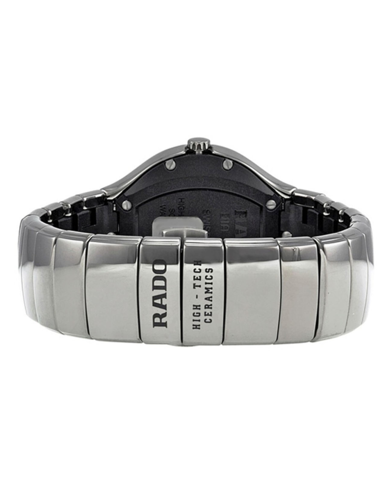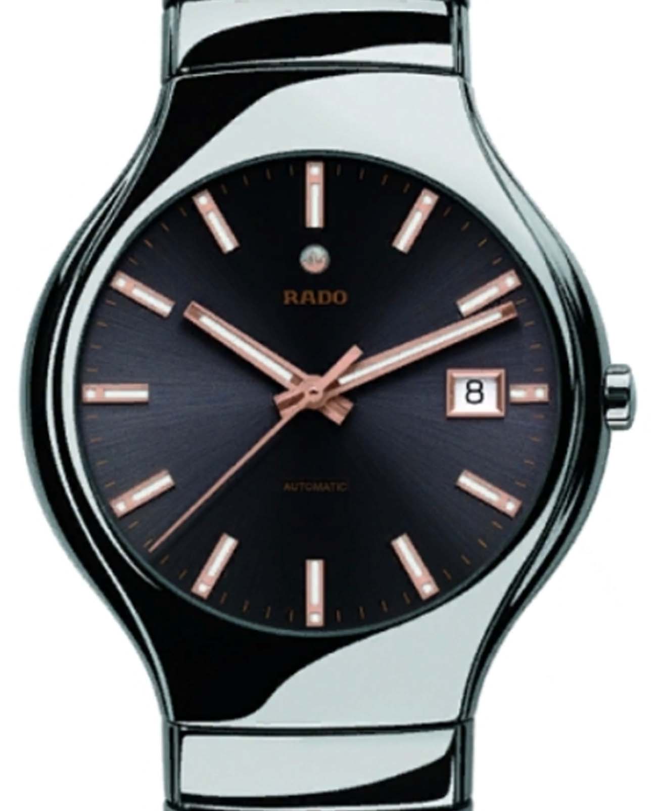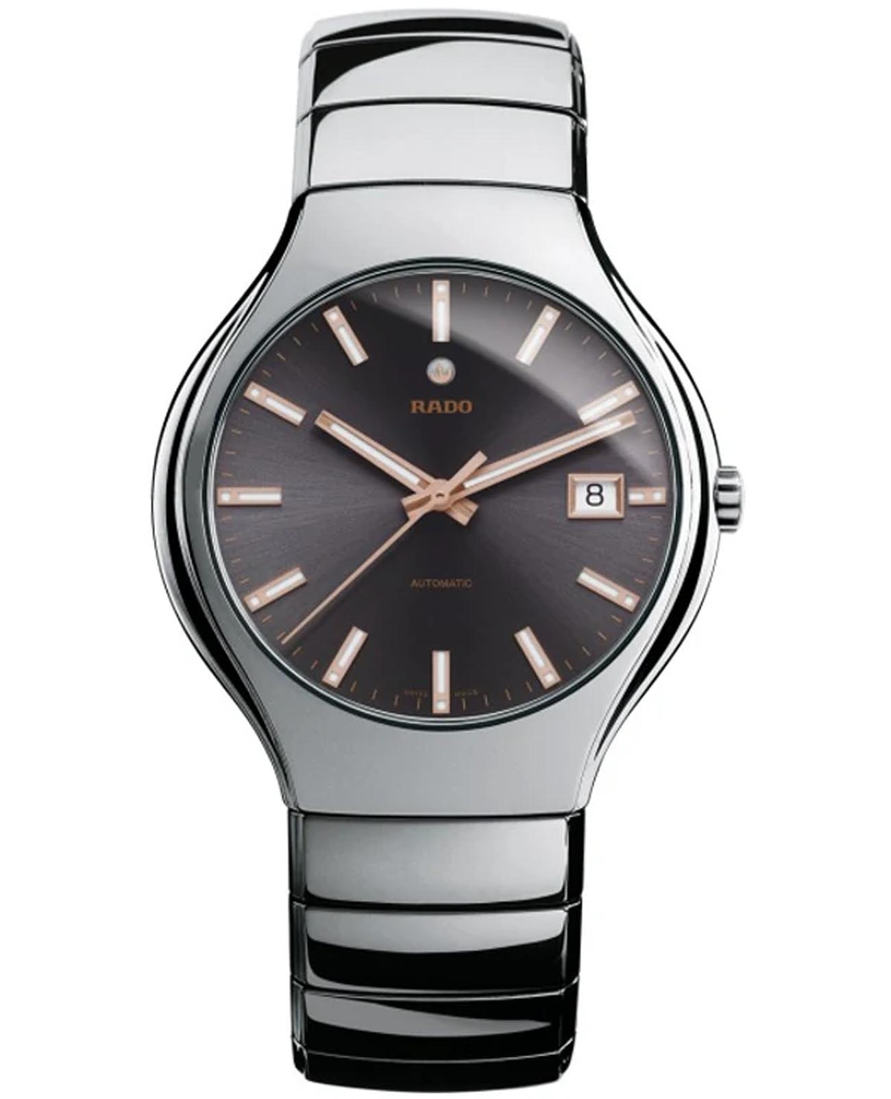 Мужские механические швейцарские часы с автоподзаводом Rado True R27351102. Сапфировое стеклоСапфировое стеклоПрочный и надёжный материал из кристалла сапфира синтетического происхождения, характеризующийся особой твёрдостью и устойчивостью к царапинам и повреждениям. устойчивое к мелким механическим повреждениям. Корпус часов изготовлен из высокотехнологичной керамикиВысокотехнологичная керамикаИнновационный запатентованный Rado материал с гладкой или матовой поверхностью. Керамика за счёт кристаллической структуры обладает повышенной устойчивостью от возникновения царапин. Материал способен принимать температуру тела человека, обеспечивая невероятный комфорт при ношении.. Окошко даты находится в положении 3 часа. Стрелки с люминесцентным покрытиемЛюминесцентное покрытиеПозволяет считывать показания времени в темноте. Производители наносят на стрелки, часовые индексы, безель или поверхность циферблата светонакопительный состав, дающий холодное свечение.. Браслет из высокотехнологичной керамикиВысокотехнологичная керамикаИнновационный запатентованный Rado материал с гладкой или матовой поверхностью. Керамика за счёт кристаллической структуры обладает повышенной устойчивостью от возникновения царапин. Материал способен принимать температуру тела человека, обеспечивая невероятный комфорт при ношении. на застёжке-бабочке с кнопкамиЗастёжка "бабочка"Такой вид застёжки дополняется предохранителями, помогающими избежать случайного раскрытия браслета. Обладают изящным исполнением. .