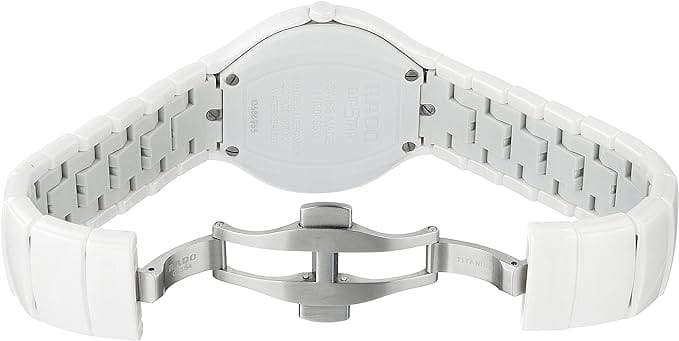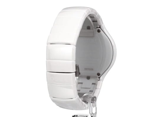 Глянцевый корпус представлен в оригинальном дизайне, его линии плавно перетекают в браслет. Наручные часы выполнены из высокотехнологичной плазменной керамикиВысокотехнологичная плазменная керамикаИнновационный материал, технология запатентована. Выплавление керамики осуществляется в печи при 20 000 °C, белоснежный материал под воздействием ультравысокой температуры приобретает уникальный блеск, присущий металлам., материал не вызывает аллергии и обеспечивает невероятный комфорт при ношении. Швейцарский кварцевый калибр ETA 955.112. Сапфировое стеклоСапфировое стеклоПрочный и надёжный материал из кристалла сапфира синтетического происхождения, характеризующийся особой твёрдостью и устойчивостью к царапинам и повреждениям. устойчиво к образованию царапин. Водостойкость 3 бар. Застёжка «бабочка» с кнопкамиЗастёжка "бабочка"Такой вид застёжки дополняется предохранителями, помогающими избежать случайного раскрытия браслета. Обладают изящным исполнением. сводит к минимуму вероятность потери модели. Циферблат выполнен с метками в виде бриллиантов. Окошко даты в положении 6 часа. Диаметр корпуса: 40 мм.