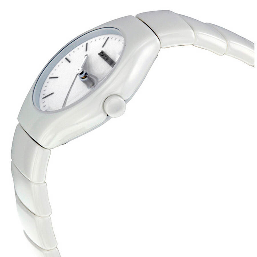 Глянцевый корпус представлен в оригинальном дизайне, его линии плавно перетекают в браслет. Наручные часы выполнены из высокотехнологичной плазменной керамикиВысокотехнологичная плазменная керамикаИнновационный материал, технология запатентована. Выплавление керамики осуществляется в печи при 20 000 °C, белоснежный материал под воздействием ультравысокой температуры приобретает уникальный блеск, присущий металлам., материал не вызывает аллергии и обеспечивает невероятный комфорт при ношении. Швейцарский кварцевый калибр ETA 980.106. Сапфировое стеклоСапфировое стеклоПрочный и надёжный материал из кристалла сапфира синтетического происхождения, характеризующийся особой твёрдостью и устойчивостью к царапинам и повреждениям. устойчиво к образованию царапин. Водостойкость 3 бар. Застёжка «бабочка» с кнопкамиЗастёжка "бабочка"Такой вид застёжки дополняется предохранителями, помогающими избежать случайного раскрытия браслета. Обладают изящным исполнением. сводит к минимуму вероятность потери модели. Диаметр корпуса: 27 мм.