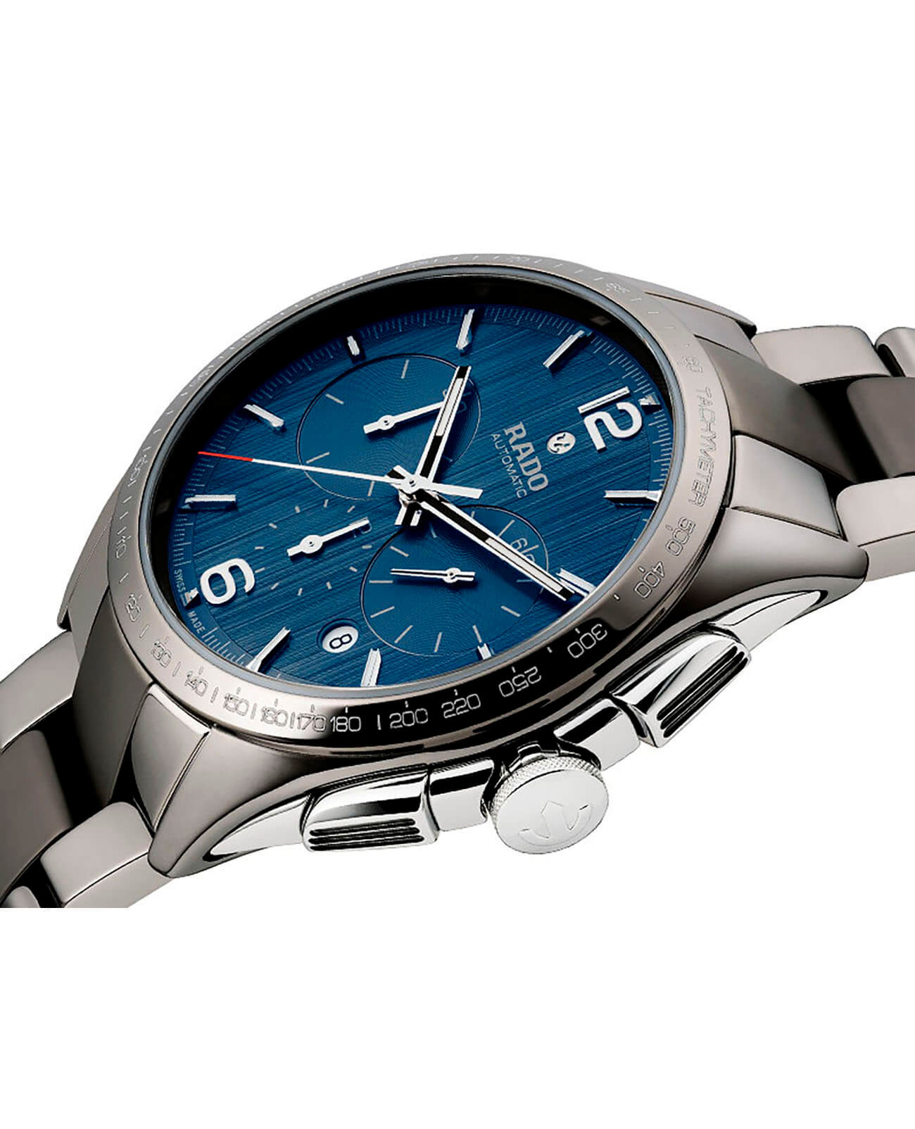Премиальная модель отличается стильным дизайном, соединяющим классическую лаконичность и спортивные детали. Синий циферблат с элегантным продольным узором дополнен счётчиками хронографаХронографФункция позволяет измерять отрезки времени с особой точностью: часы, минуты, секунды. Верным признаком хронографа является наличие на циферблате 3 дополнительных окошек-счётчиков. и окошком даты. Уникальность аксессуара заключается в используемых материалах: корпус изготовлен из хирургической стали 316L и плазменной керамикиВысокотехнологичная плазменная керамикаИнновационный материал, технология запатентована. Выплавление керамики осуществляется в печи при 20 000 °C, белоснежный материал под воздействием ультравысокой температуры приобретает уникальный блеск, присущий металлам., браслет сделан из плазменной керамики и материала CeramosCeramosМатериал являет собой инновационное сочетание высокотехнологичной керамики и сплава металла. Он объединяет керамическую устойчивость к царапинам и металлический роскошный блеск. . В основе - механизм ETA 2894-2 с запасом хода 45 часов. Прозрачная задняя крышка. Сапфировое стекло с покрытием «антиблик». Водонепроницаемость до 10 бар. . Секундомер, тахиметрТахиметрРазмеченная шкала, располагается на ободке или безеле часов. Тахиметр позволяет рассчитать скорость на определённом участке пути, расстояние измеряется в километрах или милях.. Диаметр корпуса: 45 мм.