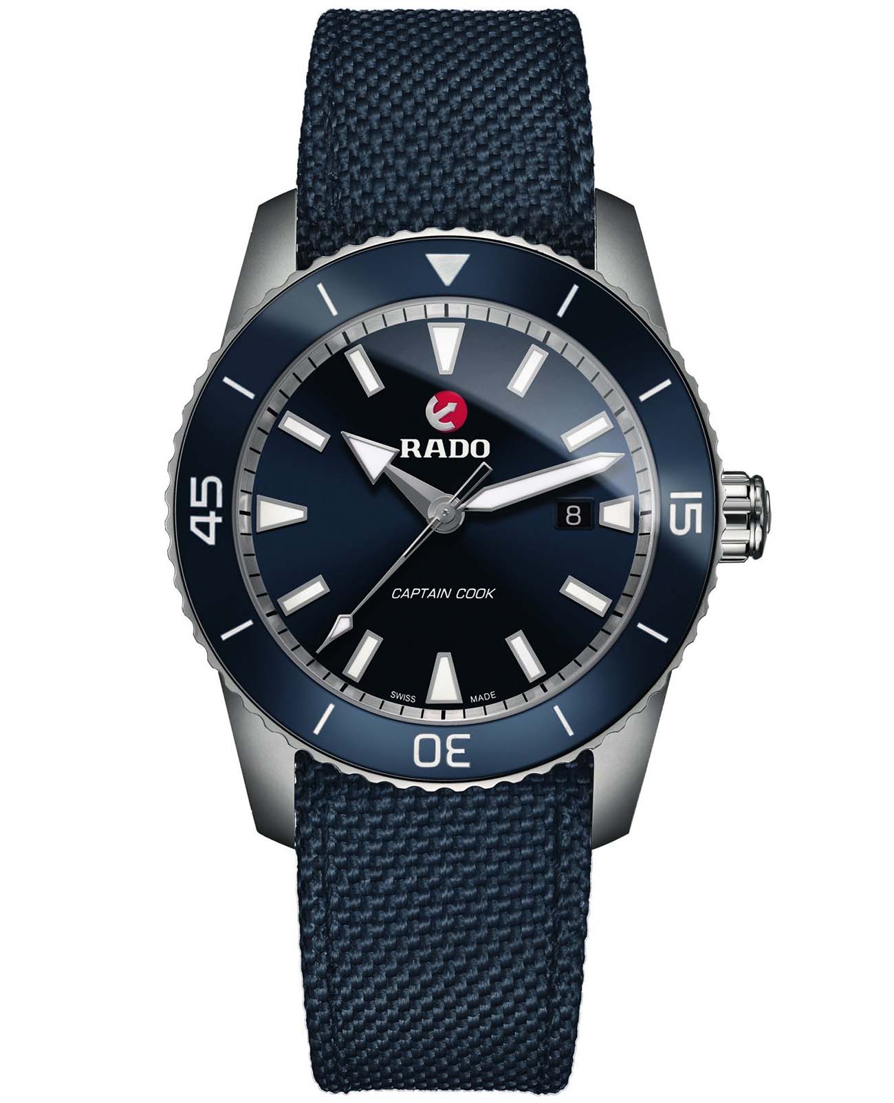 Мужские механические швейцарские часы Rado Captain Cook Automatic R32501206 из коллекции Captain Cook станут превосходным дополнением к образу солидного и успешного человека. Премиальная модель обладает винтажным характером, синий циферблат обращает наше внимание на оригинальные стрелки в виде меча и стрелы. Часы обладают высокими показателями водонепроницаемости - сохранение герметичности до 20 бар, что стало возможным благодаря задней крышке и заводной головке с винтовыми фиксаторами. Автоподзавод. Швейцарский калибр ETA C07.611 с 80-часовым резервом хода. Антибликовая обработка сапфирового стекла. Корпус из титана, безельБезельВнешний ободок, закрепляющий стекло. В спортивных часах так называется поворотное кольцо с делениями на циферблате, выполняет роль таймера – замеряет отрезки времени на шкале. Неподвижный безель – элемент декора. Однонаправленно вращающийся безель на дайверских часах позволяет фиксировать моменты погружения и выныривания на поверхность. из высокотехнологичной керамикиВысокотехнологичная керамикаИнновационный запатентованный Rado материал с гладкой или матовой поверхностью. Керамика за счёт кристаллической структуры обладает повышенной устойчивостью от возникновения царапин. Материал способен принимать температуру тела человека, обеспечивая невероятный комфорт при ношении.. Отображение числа. Диаметр корпуса: 45 мм. Производство и сборка: Швейцария.