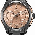Мужские механические швейцарские часы- хронографХронографФункция позволяет измерять отрезки времени с особой точностью: часы, минуты, секунды. Верным признаком хронографа является наличие на циферблате 3 дополнительных окошек-счётчиков. с автоподзаводом Rado HyperChrome Automatic Chronograph R32754692. Ограниченный выпуск (333 экземпляра). Сапфировое стеклоСапфировое стеклоПрочный и надёжный материал из кристалла сапфира синтетического происхождения, характеризующийся особой твёрдостью и устойчивостью к царапинам и повреждениям. устойчивое к мелким механическим повреждениям. Корпус часов изготовлен из высокотехнологичной керамикиВысокотехнологичная керамикаИнновационный запатентованный Rado материал с гладкой или матовой поверхностью. Керамика за счёт кристаллической структуры обладает повышенной устойчивостью от возникновения царапин. Материал способен принимать температуру тела человека, обеспечивая невероятный комфорт при ношении. и 18-каратного золота18-каратное золотоОбозначение по каратной системе пробирования, оно показывает, сколько драгоценного металла содержится в изделии. 18 карат - в составе 75% чистого золота, соответствует 750 пробе.