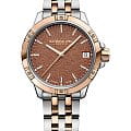 Raymond Weil Tango Classic (артикул 5960-SP5-70061) — это элегантные женские часы, идеально сочетающие стиль и функциональность. Корпус диаметром 30 мм изготовлен из нержавеющей стали и БезельБезельВнешний ободок, закрепляющий стекло. В спортивных часах так называется поворотное кольцо с делениями на циферблате, выполняет роль таймера – замеряет отрезки времени на шкале. Неподвижный безель – элемент декора. Однонаправленно вращающийся безель на дайверских часах позволяет фиксировать моменты погружения и выныривания на поверхность. с PVD-покрытиемPVDУльтратонкое покрытие наносится в технике вакуумного напыления, сочетает в себе нитрид титана особой прочности со слоем золота или оксида хрома. Несёт в себе декоративную или защитную функцию. розового золота, создающим утончённый двухцветный дизайн. Циферблат терракотового цвета защищён сапфировым стекломСапфировое стеклоПрочный и надёжный материал из кристалла сапфира синтетического происхождения, характеризующийся особой твёрдостью и устойчивостью к царапинам и повреждениям. с антибликовым покрытиемАнтибликовое покрытиеСлой оксида металла в 0,13-0,3 микрон, благодаря которому стекло часов не бликует и не отражает свет. Антибликовое покрытие уменьшает отражение света в 10 раз, обеспечивая отличную читаемость показателей циферблата. и оснащён люминесцентными стрелками с люминесцентным покрытиемЛюминесцентное покрытиеПозволяет считывать показания времени в темноте. Производители наносят на стрелки, часовые индексы, безель или поверхность циферблата светонакопительный состав, дающий холодное свечение., что обеспечивает отличную видимость в любое время суток. Окошко даты расположено на отметке «3 часа» для удобства использования. Браслет из нержавеющей стали с PVD-покрытиемPVDУльтратонкое покрытие наносится в технике вакуумного напыления, сочетает в себе нитрид титана особой прочности со слоем золота или оксида хрома. Несёт в себе декоративную или защитную функцию. оснащён надёжной раскладной застёжкойРаскладная застёжкаТакой тип застёжки используется только на браслетах из металла. Она никогда не раскрывается полностью, происходит разделение на 2 и более частей. Раскладывающая застёжка снизит вероятность потери часов к минимуму. для удобства и безопасности. Часы водонепроницаемы до 100 метров, что делает их подходящими для повседневной носки. Raymond Weil Tango Classic 5960-SP5-70061 — это универсальное решение для тех, кто ценит качество, стиль и практичность.