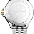 Raymond Weil Tango Classic (артикул 5960-STP-30041) — элегантные женские часы, сочетающие изысканный дизайн и высокое качество. Корпус диаметром 30 мм выполнен из нержавеющей стали и БезельБезельВнешний ободок, закрепляющий стекло. В спортивных часах так называется поворотное кольцо с делениями на циферблате, выполняет роль таймера – замеряет отрезки времени на шкале. Неподвижный безель – элемент декора. Однонаправленно вращающийся безель на дайверских часах позволяет фиксировать моменты погружения и выныривания на поверхность. с жёлтым PVD-покрытиемPVDУльтратонкое покрытие наносится в технике вакуумного напыления, сочетает в себе нитрид титана особой прочности со слоем золота или оксида хрома. Несёт в себе декоративную или защитную функцию., придающим часам утончённый двухцветный вид. Белый циферблат с солнечным узором украшен тонкими часовыми метками и стрелками с люминесцентным покрытиемЛюминесцентное покрытиеПозволяет считывать показания времени в темноте. Производители наносят на стрелки, часовые индексы, безель или поверхность циферблата светонакопительный состав, дающий холодное свечение., обеспечивающим отличную читаемость даже в условиях низкой освещённости. Окошко даты расположено на отметке «3 часа» для дополнительного удобства. Часы оснащены сапфировым стекломСапфировое стеклоПрочный и надёжный материал из кристалла сапфира синтетического происхождения, характеризующийся особой твёрдостью и устойчивостью к царапинам и повреждениям. с антибликовым покрытиемАнтибликовое покрытиеСлой оксида металла в 0,13-0,3 микрон, благодаря которому стекло часов не бликует и не отражает свет. Антибликовое покрытие уменьшает отражение света в 10 раз, обеспечивая отличную читаемость показателей циферблата., защищающим от царапин и обеспечивающим превосходную видимость. Водонепроницаемость до 100 метров позволяет носить их в повседневной жизни, не беспокоясь о сохранности механизма. Надёжный кварцевый механизм гарантирует точность хода. Эргономичный браслет из нержавеющей стали с жёлтым PVD-покрытиемPVDУльтратонкое покрытие наносится в технике вакуумного напыления, сочетает в себе нитрид титана особой прочности со слоем золота или оксида хрома. Несёт в себе декоративную или защитную функцию. состоит из пяти рядов звеньев и оснащён раскладной застёжкойРаскладная застёжкаТакой тип застёжки используется только на браслетах из металла. Она никогда не раскрывается полностью, происходит разделение на 2 и более частей. Раскладывающая застёжка снизит вероятность потери часов к минимуму. с двойной системой безопасности, обеспечивая комфорт и надёжность при носке. Raymond Weil Tango Classic 5960-STP-30041 — это сочетание изысканного дизайна и функциональности, идеально подходящее для современной женщины, ценящей стиль и качество.