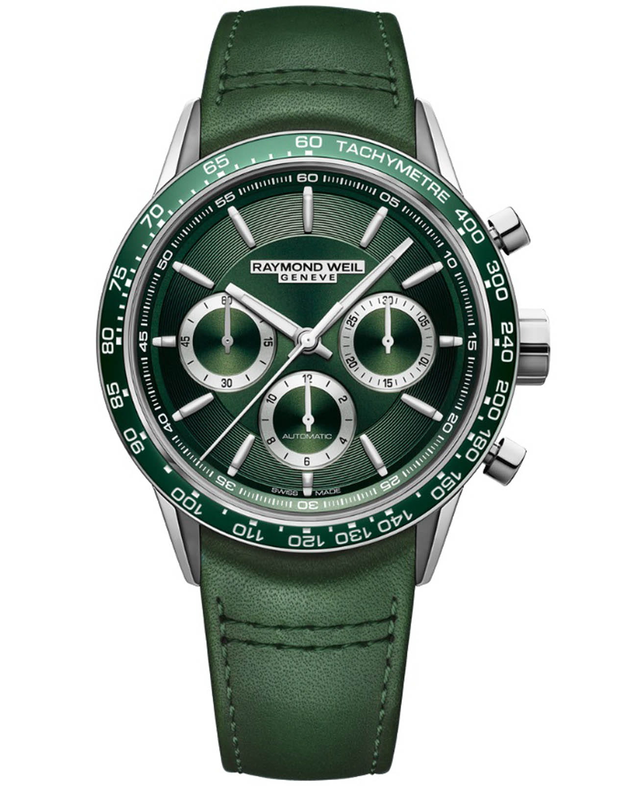 Стильные швейцарские часы Raymond Weil 7741-SC7-52021 идеально подойдут современному мужчине, стремящемуся подчеркнуть свою индивидуальность. Эти механические часы-хронографХронографФункция позволяет измерять отрезки времени с особой точностью: часы, минуты, секунды. Верным признаком хронографа является наличие на циферблате 3 дополнительных окошек-счётчиков. оснащены секундомером и тахиметром, что делает их не только элегантными, но и функциональными. Запас хода составляет 56 часов, что обеспечивает надежность в использовании.