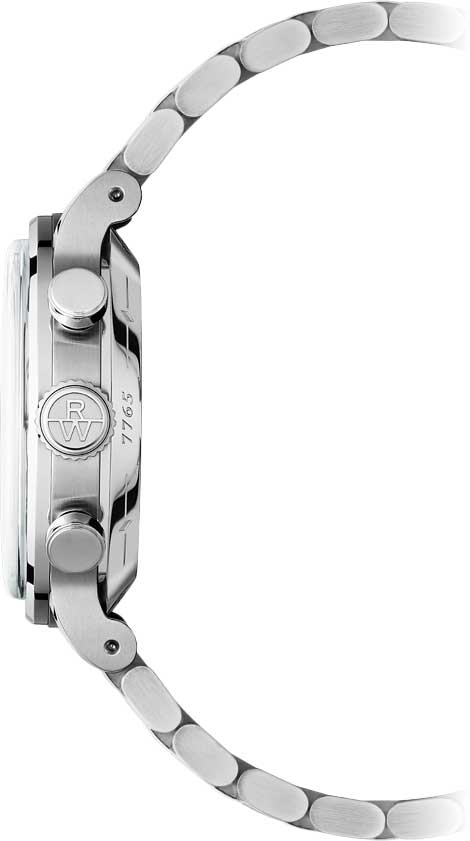 Завинчивающаяся задняя крышка и заводная головка с логотипом RW подчеркивают высокое качество.
